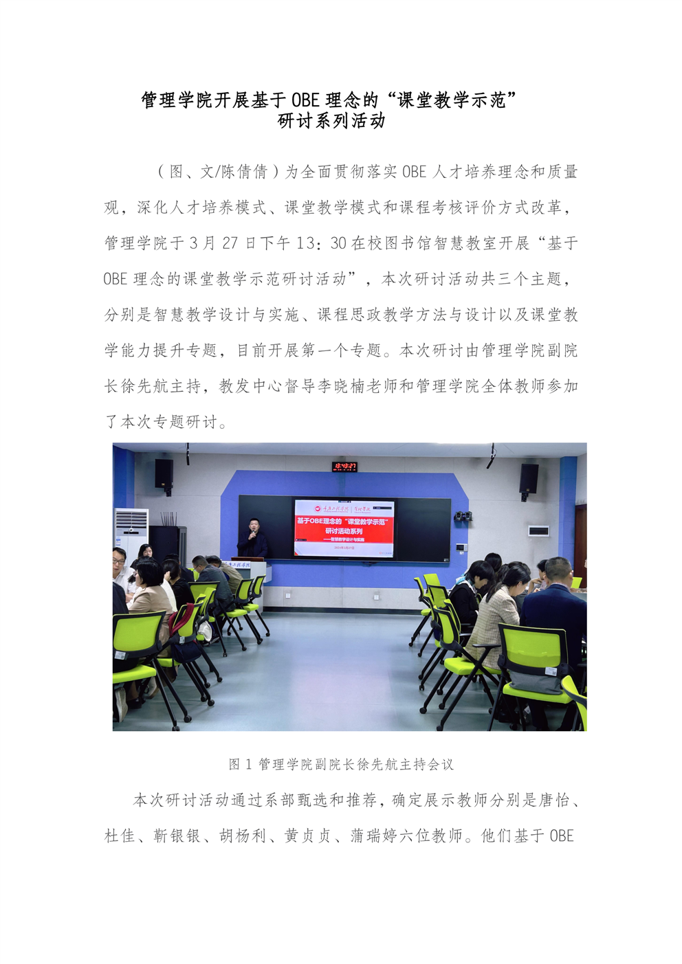 管理学院开展基于OBE理念的“课堂教学示范”研讨系列活动-智慧教学设计与实施主题