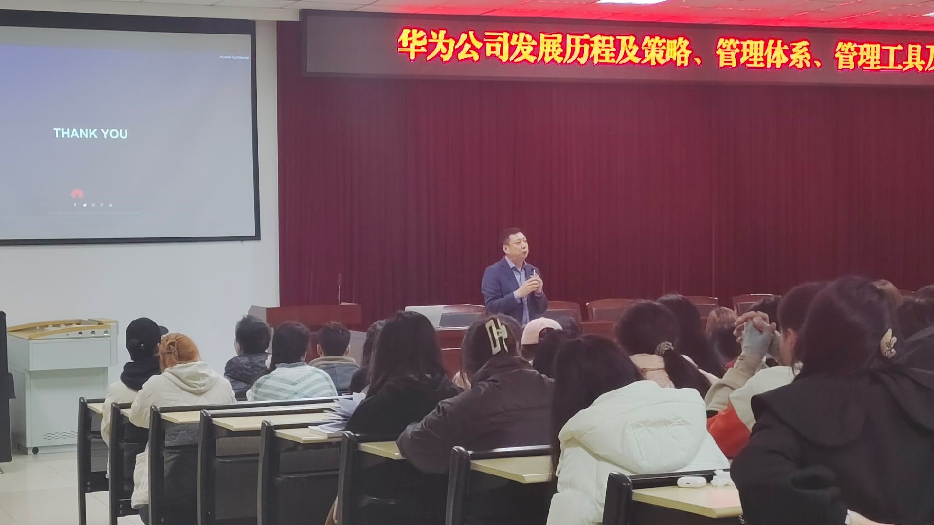 (文/图 管理学院/HR协会 杨金铭)“华为”作为全球领先的ICT基础设施和智能终端提供商,人力资源系为21级和22级人资专业同学,以及HR协会会员特地组织了一场名为"公司治理--华为管理交流"的活动,本次活动于2024年3月10日开展,本次活动共有200余人参加。此次活动旨在通过赵广龙讲师通过对“华为”发展历程及策略,管理体系,管理及管理文化几个方面来讲解,让同学们进一步了解“华为”。