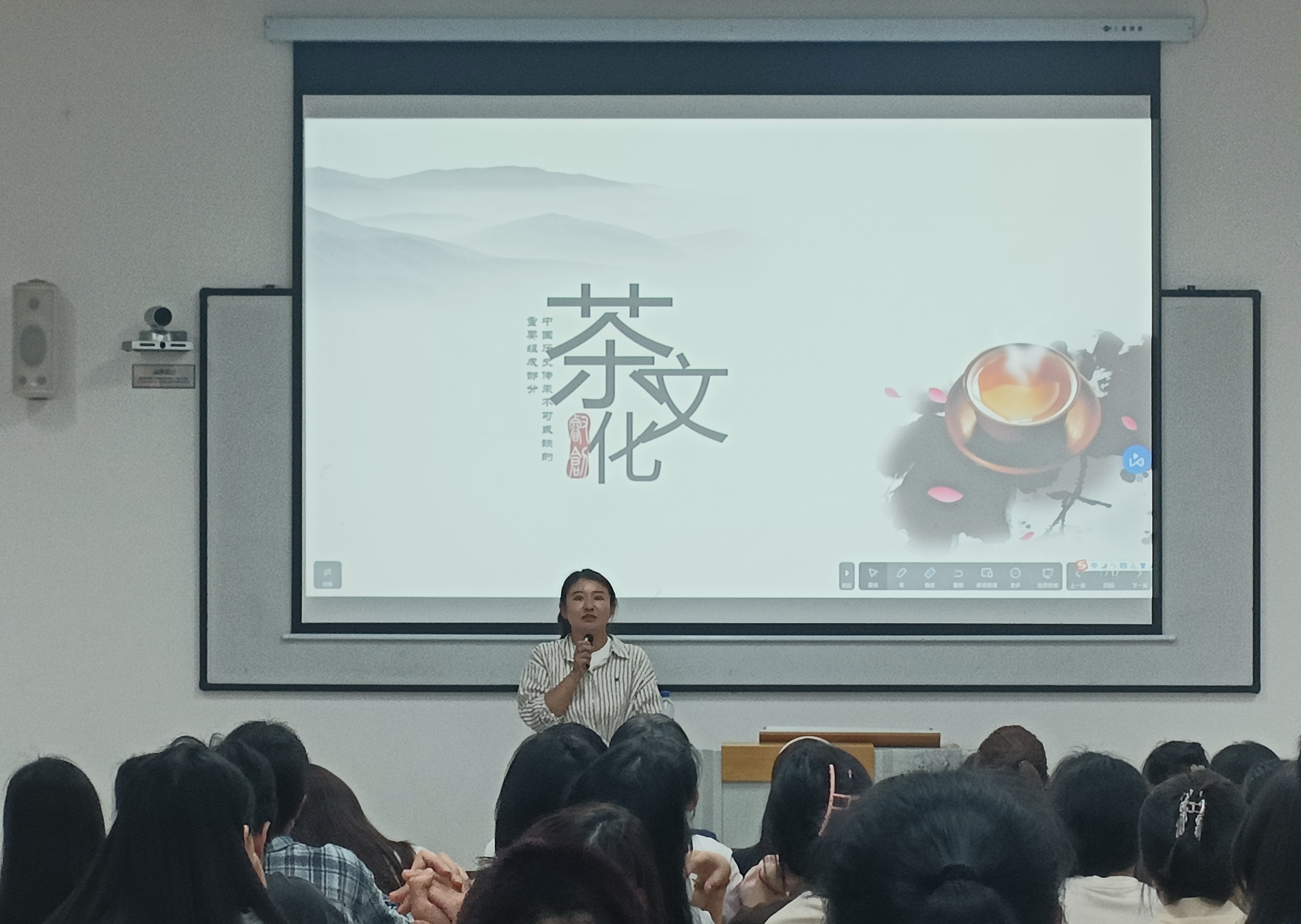 活动伊始,周玉杰同学简单介绍了活动的内容与流程,随后,春之歌茶艺社的指导老师宋文轩为大家带来了精彩的茶文化讲解。宋老师从茶的历史渊源讲起,逐一介绍了茶的六大基本品种和品饮方法,还科普了生活中与茶有关的知识。她幽默诙谐的语言让同学们在轻松愉快的氛围中,感受到了茶文化的魅力。