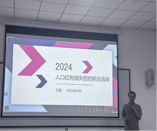 (文/图 人力资源系 王聪)4月17日下午,管理学院人力资源系在6204教室成功举办了一场名为“人口红利消失后的职业选择”的专题讲座。本次讲座旨在通过深入剖析人口结构变化对就业市场的影响,为广大学生提供科学的职业选择建议。活动吸引了200余名学生的积极参与,现场气氛热烈,互动频繁。