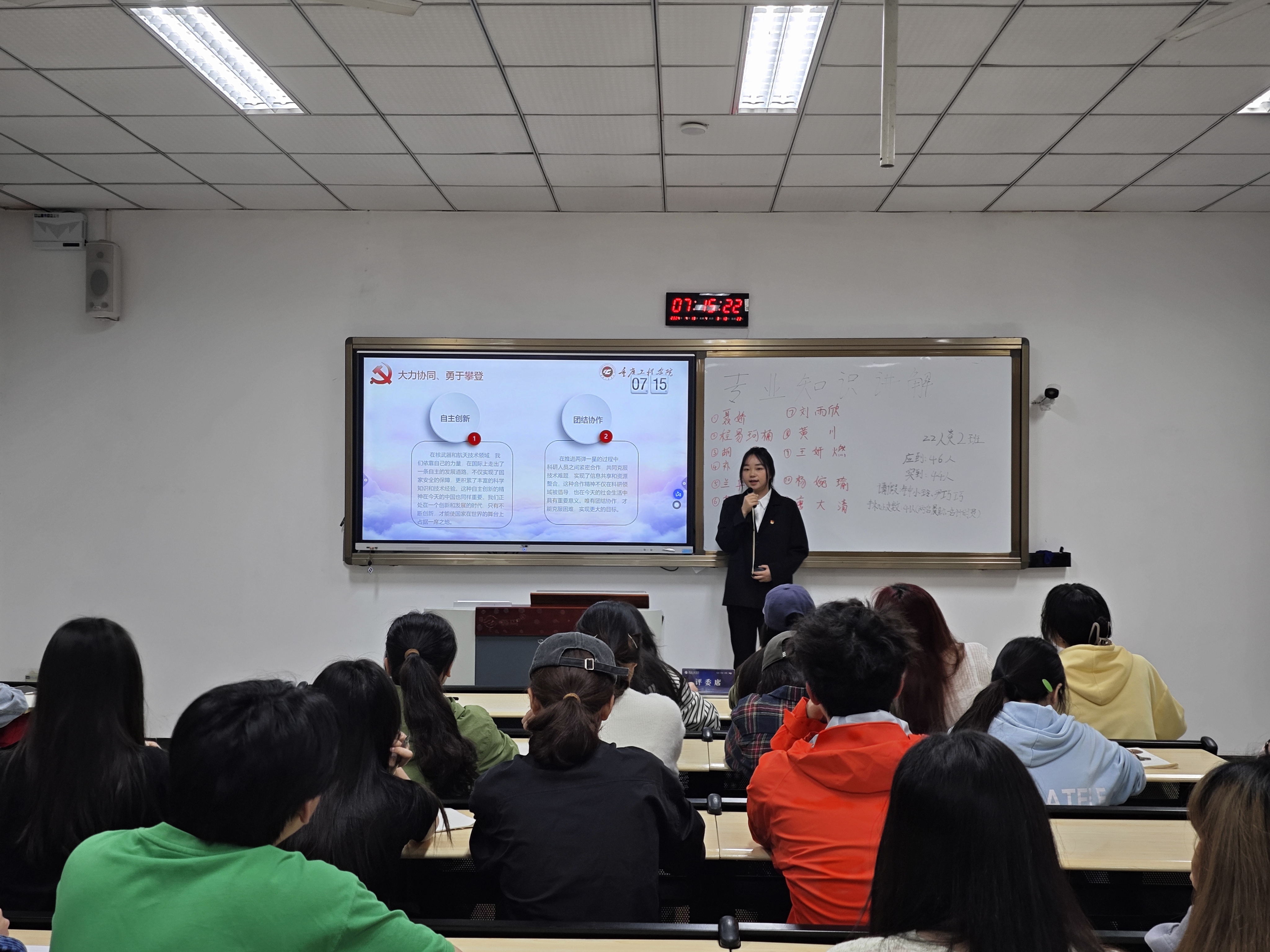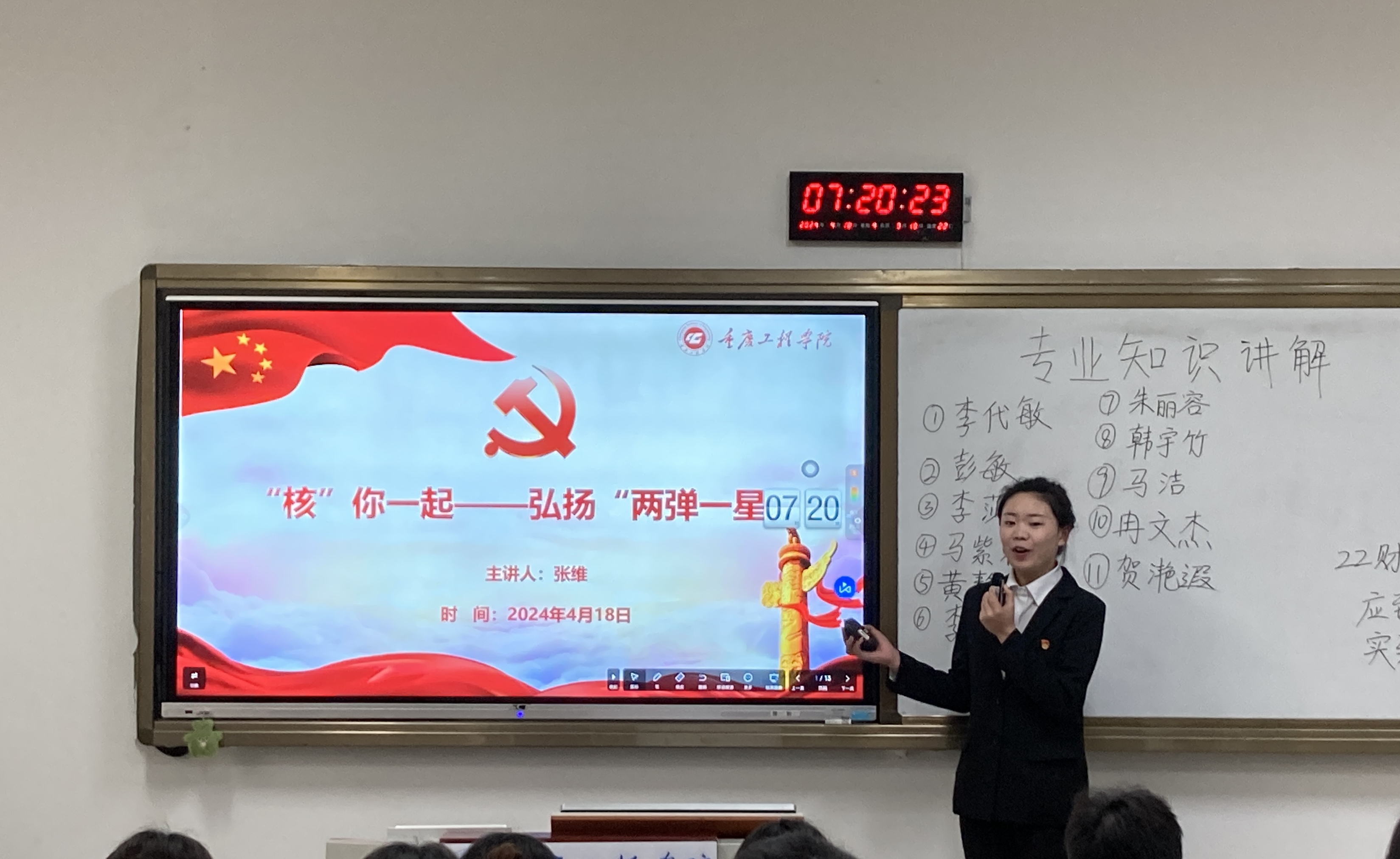 (文/图 学生党教中心 王莉)强国有我,是时代的召唤,更是青春的担当。为了更好地传承“两弹一星”精神,结合学院七培四创大学生理想信念教育方案,管理学院党总支于4月18日在第六教学楼开展“大学生微党课”进班级活动。6名学生预备党员走进晨课教室,向2022级同学们进行“强国有我,‘核’你一起——弘扬‘两弹一星’精神”主题宣讲。