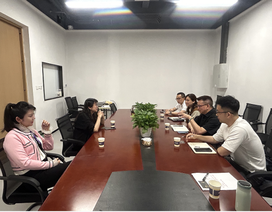 企业副总和招聘经理对简玉刚院长一行的到来表示热烈欢迎,并详细介绍了公司的业务范畴。金音集团业务多元化,涵盖了网络科技、AI智能、直播传媒、教育培训、服务外包、新能源汽车以及国际贸易七大板块,展现出强劲的发展势头和广阔的市场前景。在交流中,简玉刚院长向企业方详细介绍了管理学院在校企合作、产教融合方面所取得的成果。他提到,学院注重实践教学,积极与企业合作,建立校内实习基地,并推出“专业方向式”订单班人才培养模式,旨在培养学生的实际操作能力和职业素养,使他们更好地适应市场需求。企业方代表对管理学院的人才培养模式表示赞赏,并详细介绍了公司的核心业务和人才需求标准。双方就如何进一步深化校企合作,提升人才培养质量进行了深入探讨。