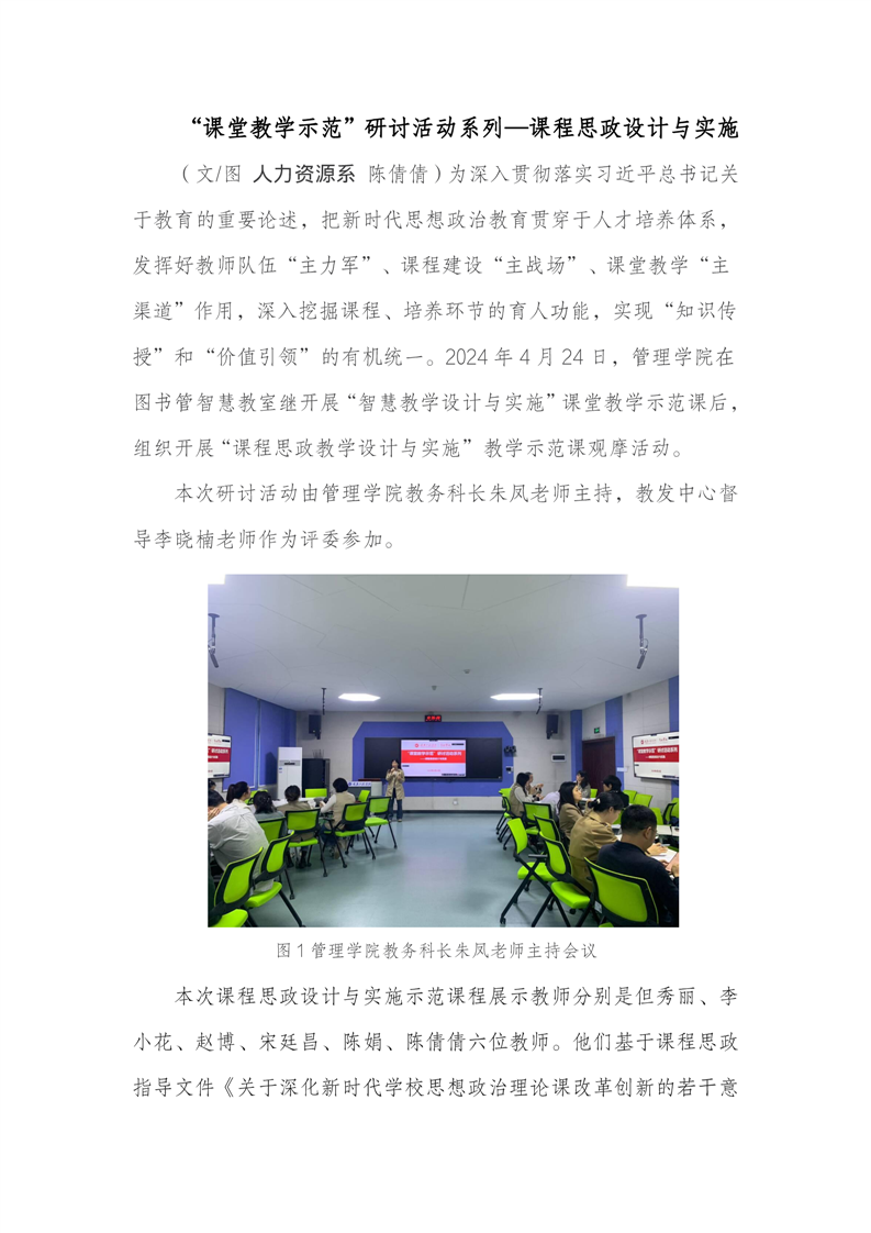 管理学院开展“课堂教学示范”研讨系列活动—课程思政设计与实施