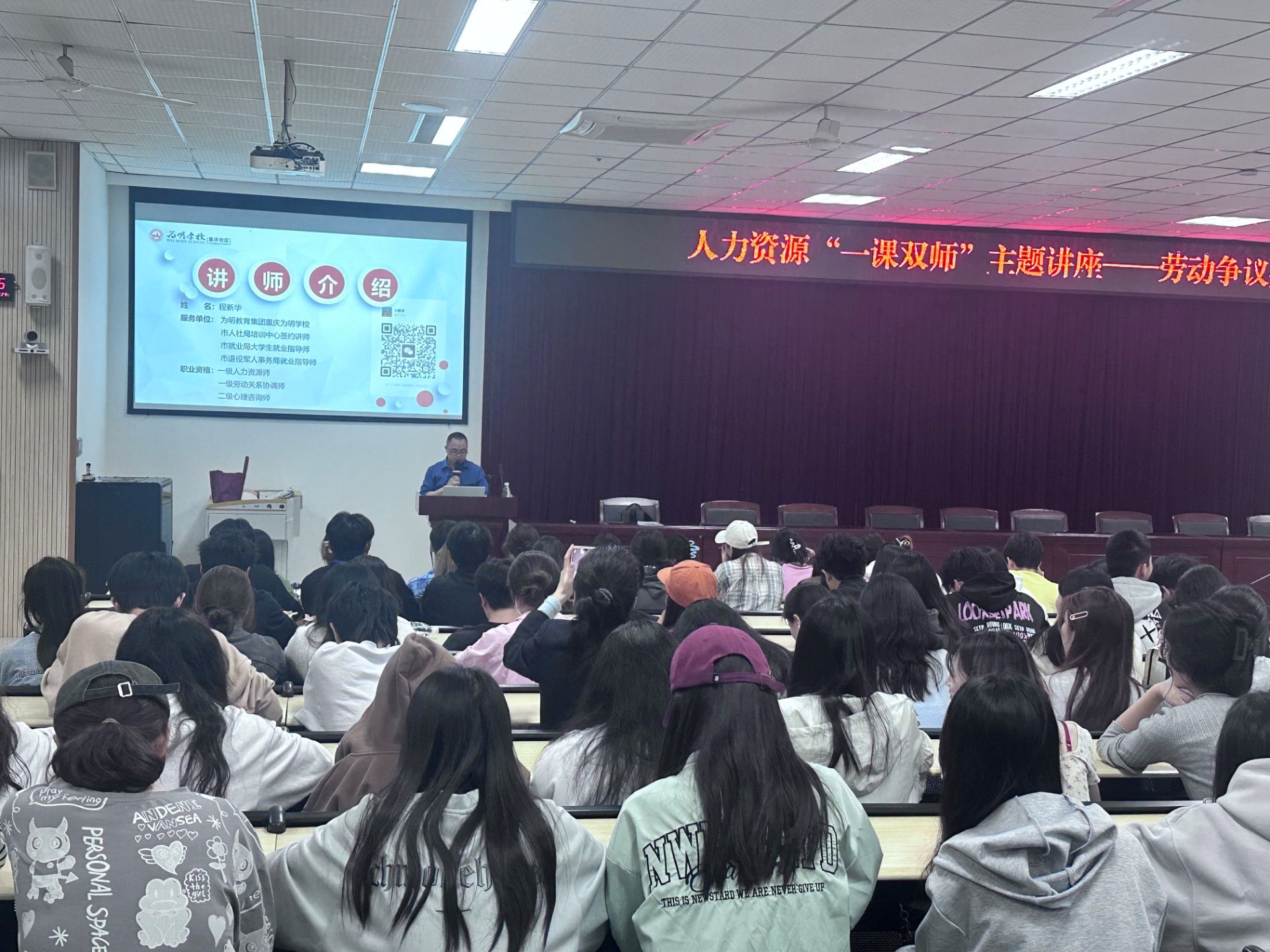 (文/图 管理学院/HR协会 杨金铭)在这个竞争激烈的时代,劳动关系的和谐稳定对于个人和企业的发展都至关重要。然而,现实中不可避免地会出现各种劳动争议。人力资源系为人力资源管理专业全体学生特地组织了一场名为"职场中的劳动争议处理"的活动,本次活动于2024年4月21日开展,本次活动共有200余人参加。此次活动旨在通过程新华讲师通过对劳动合同的清楚解析下为大家提供了实用的建议。