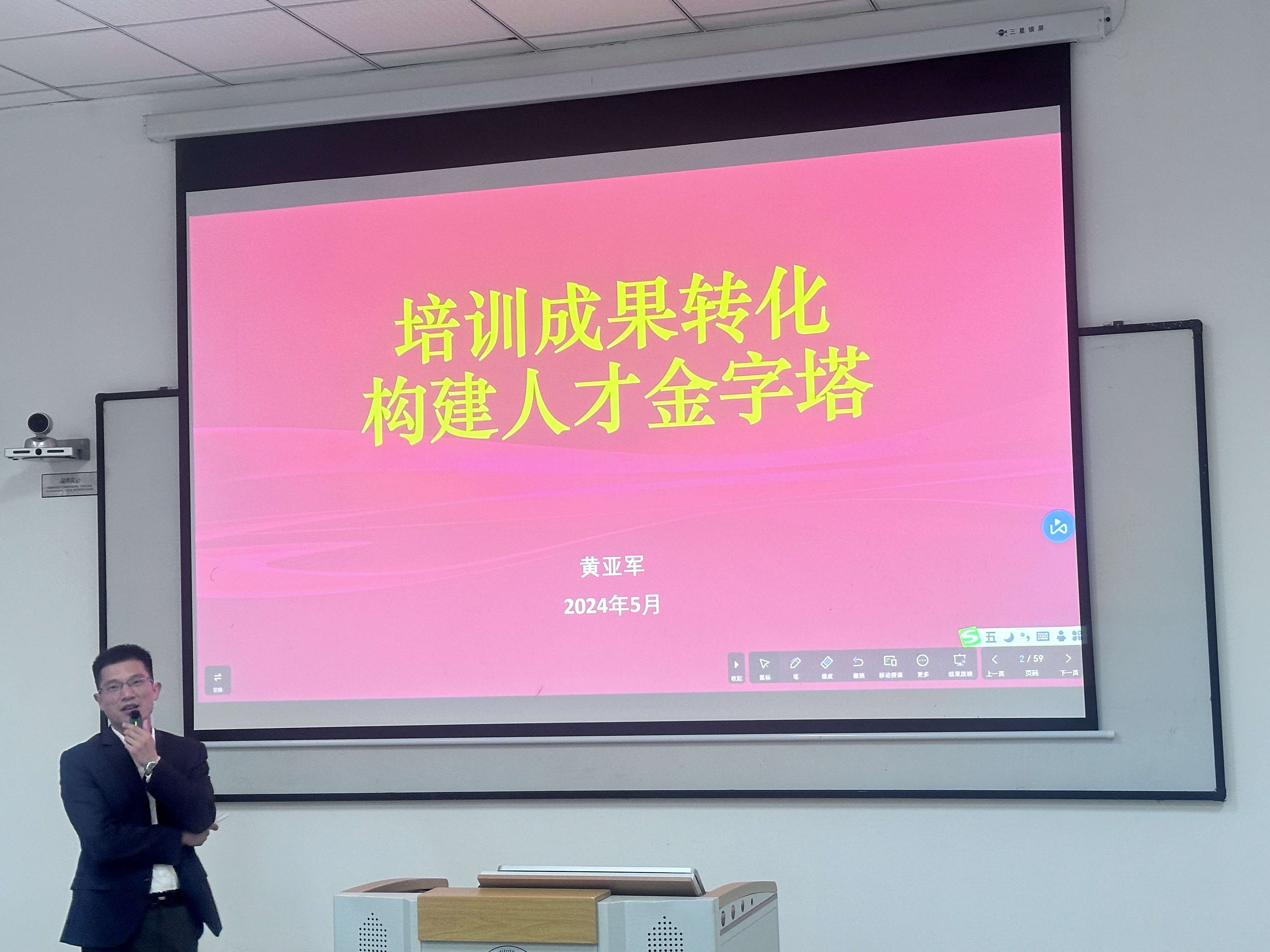 讲座主要围绕以下几点进行:一、培训成果转化技巧,讲师从如何将所培训的理论知识和其他技巧巧妙地运用到实际工作中,为公司创造更大的利益;二、建设人才金字塔,培训也是分类培训才能创造最大利益,所以在培训之前如何巧妙的创建人才金字塔也是一个非常重要的,所以讲师让我们以自身为例子,教授了实用的人才金字塔建造方法。三、案例分析,一切的理论讲解都是空谈,因此讲师还从实际案例为大家讲解如何在实际工作中用到所传授的小技巧。四、问答环节,每位同学所接受知识和技巧的程度肯定不一样,所以最后为大家留出时间一个一个解惑。