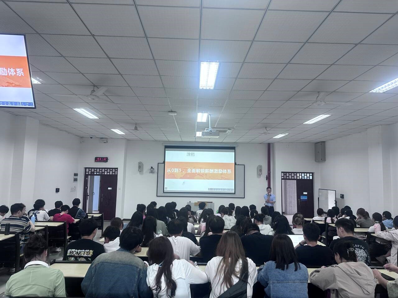 (文/图 管理学院/HR协会 杨金铭)在新时代公司众多的情况下,企业应该重视薪酬激励体系的设计和完善,以更好地推动企业的发展。人力资源系为了人力资源管理专业同学以后在公司设计薪酬激励体系。庆大龙网科技集团有限公司担任薪酬绩效专家,德邦物流、中梁地产、新大正物业集团、明源云上市公司薪酬绩效负责人、薪酬绩效专家王德刚,于2024年5月21日19:00-21:00在六教304教室为150余位同学们带来一场内容丰富的薪酬激励体系讲解。