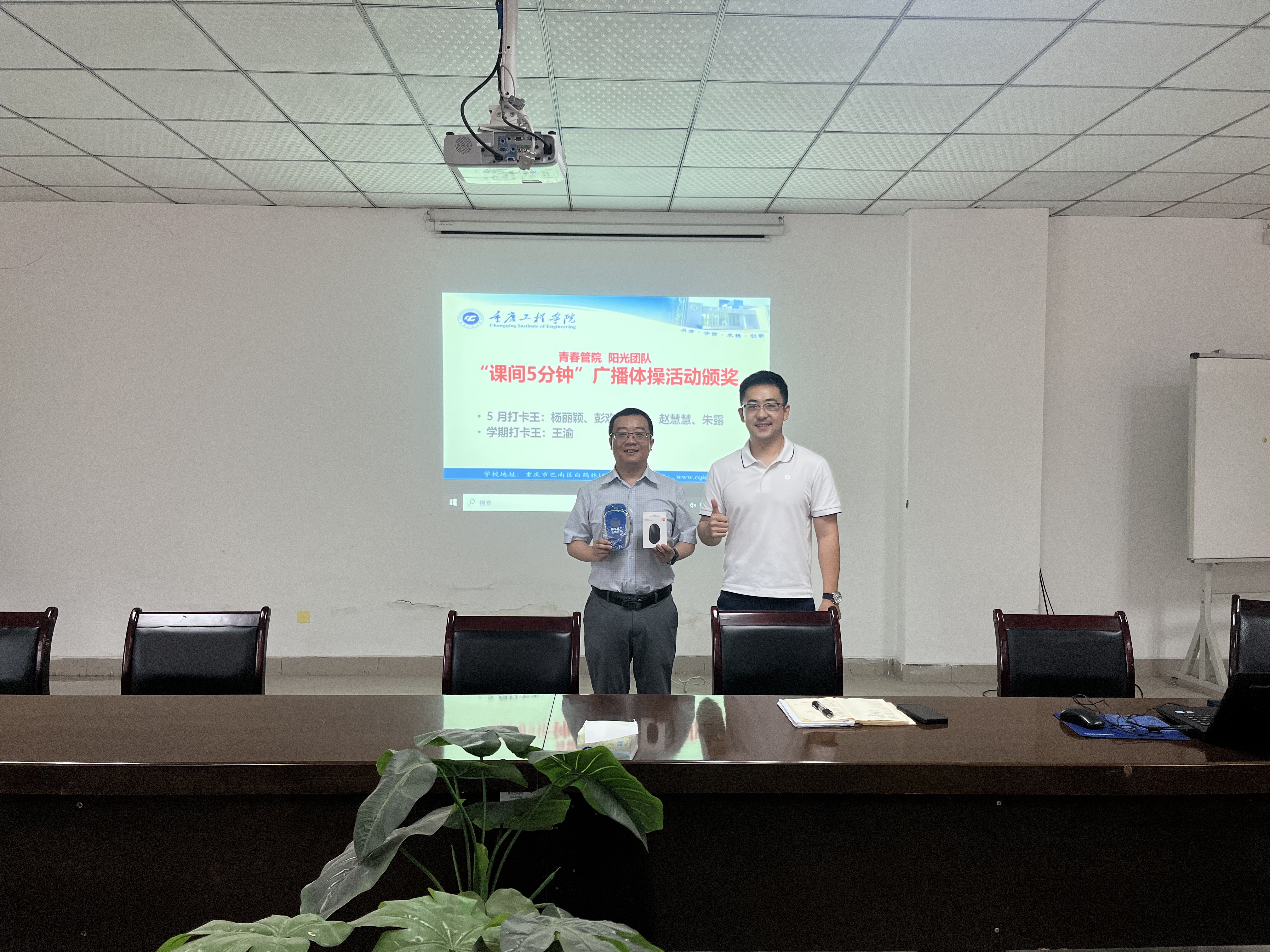 (文/图 办公室 朱露)为倡导健康生活,增强教师团队凝聚力,管理学院分工会于6月21日举办了“课间舒身展活力,聚力同心创未来”广播体操颁奖活动。本学期的跳操活动得到教师们的热烈响应,大家利用课间五分钟,齐聚走廊,舒展身体,展现活力,既减压又促进了交流。