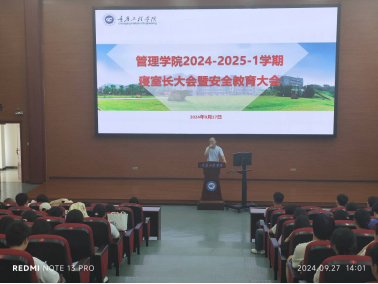 为进一步加强学生寝室管理,营造安全、和谐、文明的住宿环境,同时提升学生干部的责任意识与安全管理能力,管理学院于9月27日召开了2024-2025学年第一学期寝室长大会暨安全教育工作会.