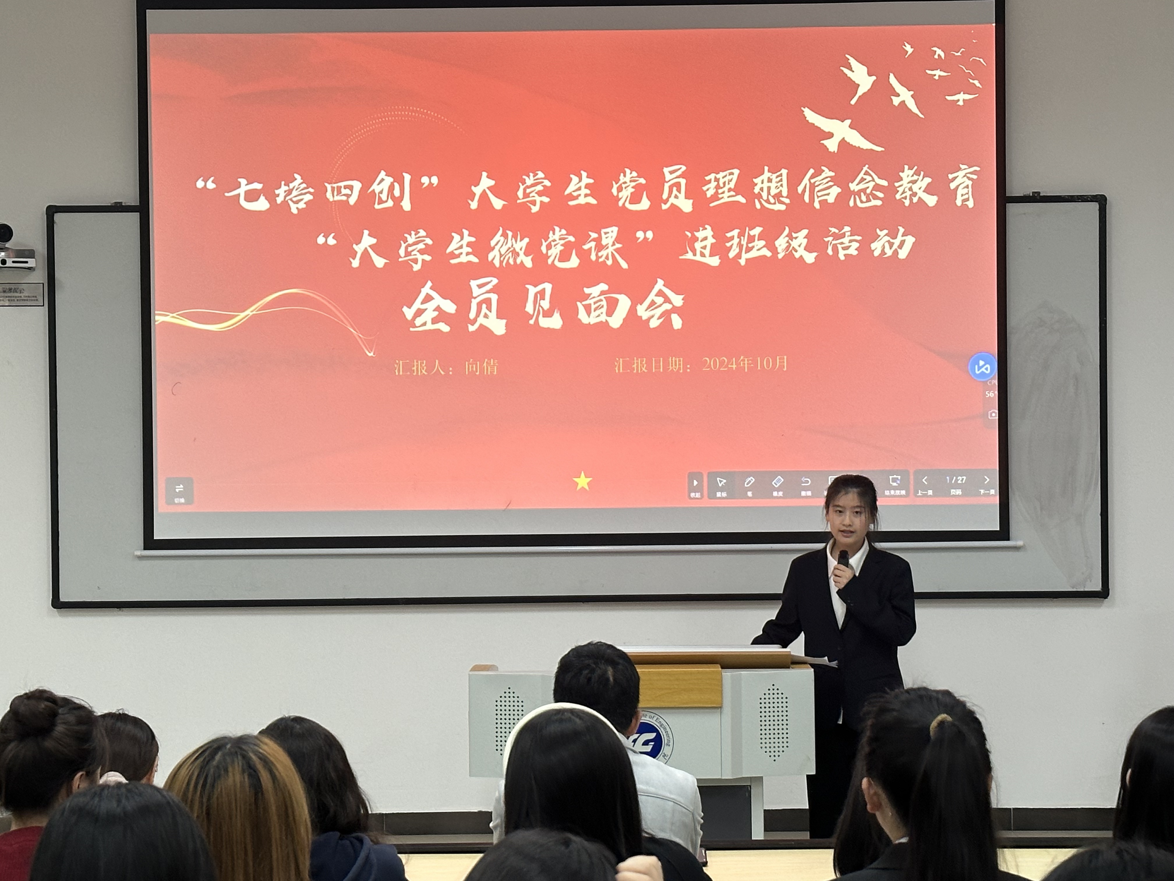 本网讯(图/朱露 文/朱露)为进一步筑牢大学生党员思想根基,提升党性修养、增强实践能力,管理学院党总支于10月21日在第六教学楼开展了“七培四创”大学生党员理想信念教育见面会。本次活动由管理学院学生党员实践教育分中心办公室干事向倩主持,邀请了党总支书记尚伟,党总支组织委员朱露出席,共计56人参与。