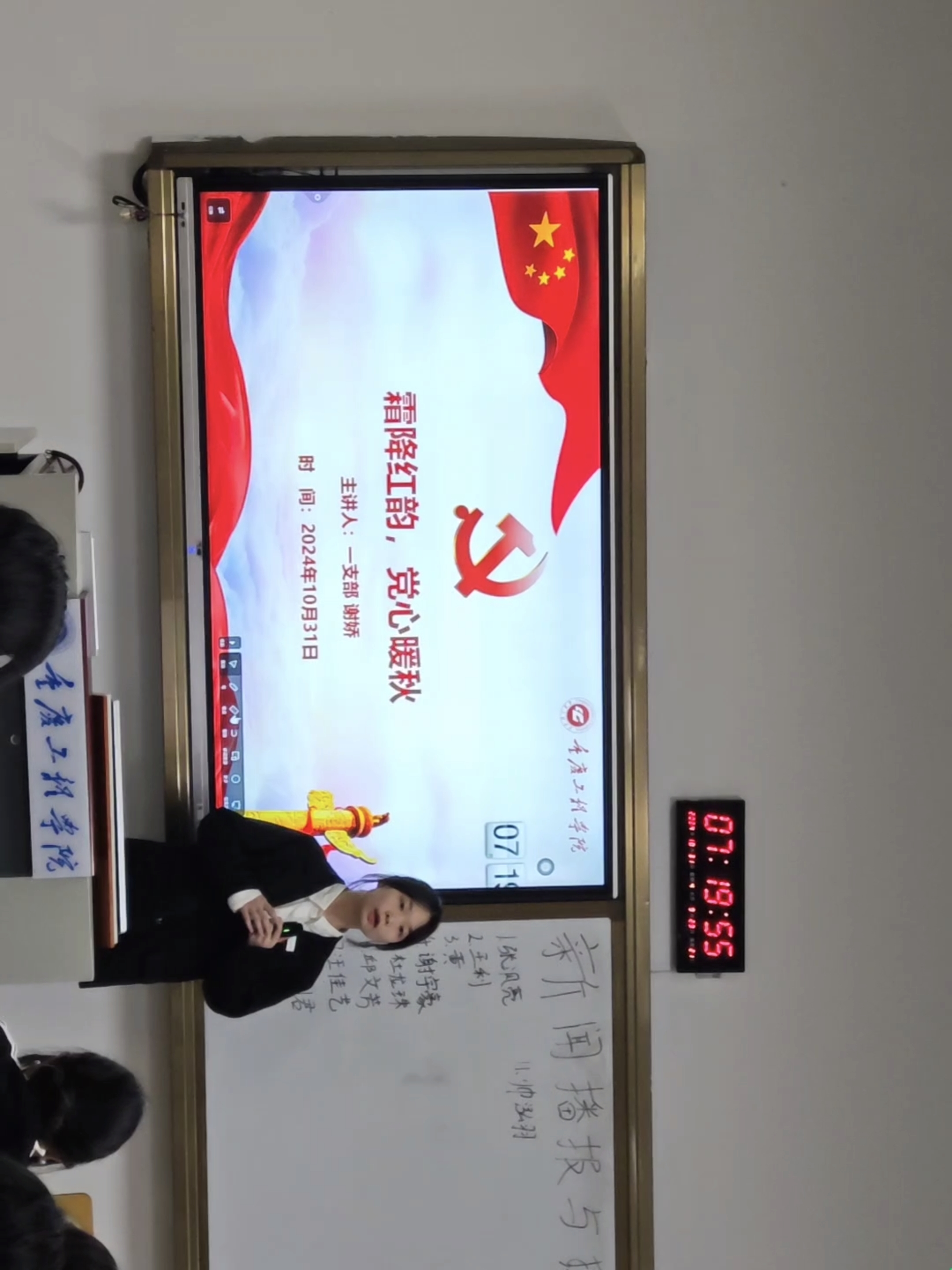 本网讯(图/柳诗羽 文/郭盈)为传承中华传统文化,弘扬党的优良传统和革命精神,激发同学们的爱国热情,结合学院七培四创大学生理想信念教育方案,管理学院党总支于10月31日组织“大学生微党课”进班级活动。管理学院的七名优秀学生预备党员为2023级的同学们带来了一场主题为“霜降红韵,党心暖秋”的宣讲活动。