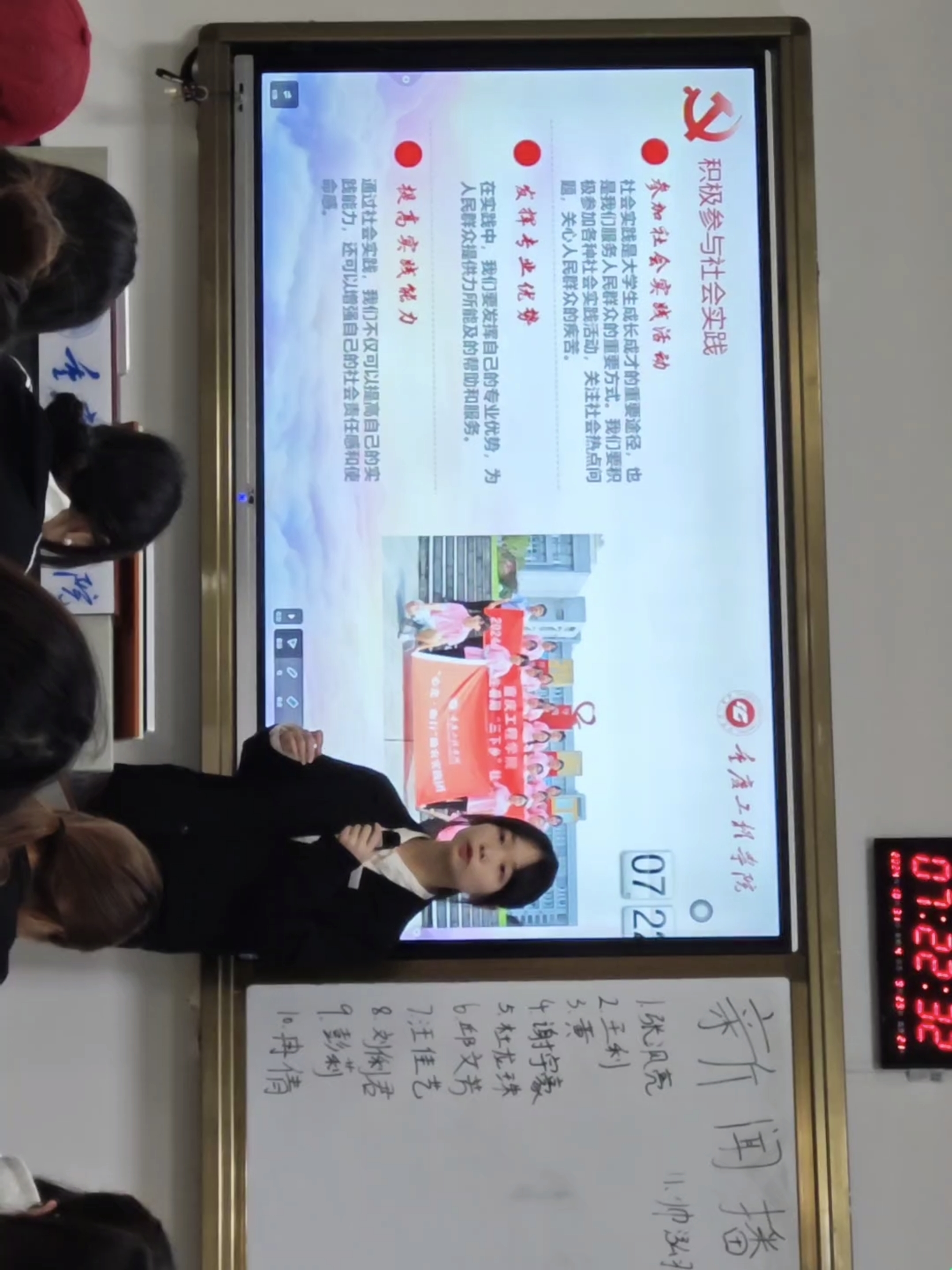 在演讲中,学生预备党员们呼吁大家要积极参与社会实践,服务人民群众。她们强调,社会实践是大学生成长成才的重要途径,也是我们服务人民群众的重要方式。我们要积极参加各种社会实践活动,关注社会热点问题,关心人民群众的内心的真正需求。在实践中,运用自己的专业知识,发挥专业优势,为人民群众提供力所能及的帮助和服务。同时,他们还谈到了新时代大学生的责任与使命,警示我们要珍惜当下的和平,中国能有如此繁荣昌盛的时代离不开党和人民的艰苦奋斗,我们当代大学生应努力提高自身能力,为实现中国梦贡献出我们的力量。