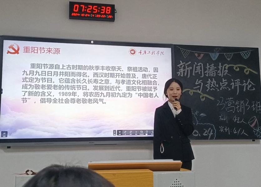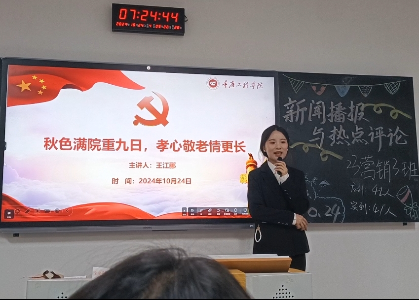 本网讯(图/李佳欣 文/刘怡矜)为深入传承与弘扬中华民族尊老爱幼的优秀文化传统,激发同学们的敬老爱老情怀,结合学院七培四创大学生理想信念教育方案,管理学院党总支于10月24日在第六教学楼开展“大学生微党课”进班级活动。七名优秀的学生预备党员登上晨课的讲台,为2023级的同学们进行了题为“秋色满园重九日,孝心敬老情更长”的主题宣讲。