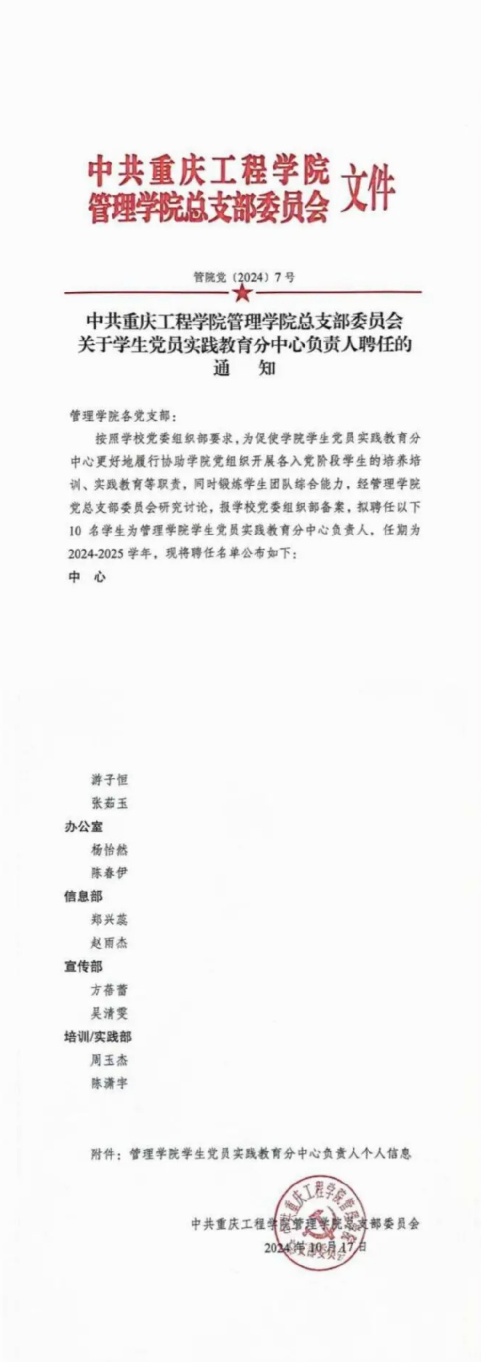 本网讯(图/朱露 文/朱露)为加强管理学院学生党员实践教育分中心新一届干事对工作的认识,提高工作效率,管理学院学生党员实践教育分中心于10月25日中午在办公楼报告厅召开2024-2025学年度换届聘任仪式。管理学院党总支书记尚伟、组织委员朱露,管理学院学院团委书记王燕楠、团委副书记杨丽颖以及管理学院团委学生会、学生党员实践教育分中心全体成员参加本次会议,本次会议由管理学院学生党员实践教育分中心成员陈春伊主持。