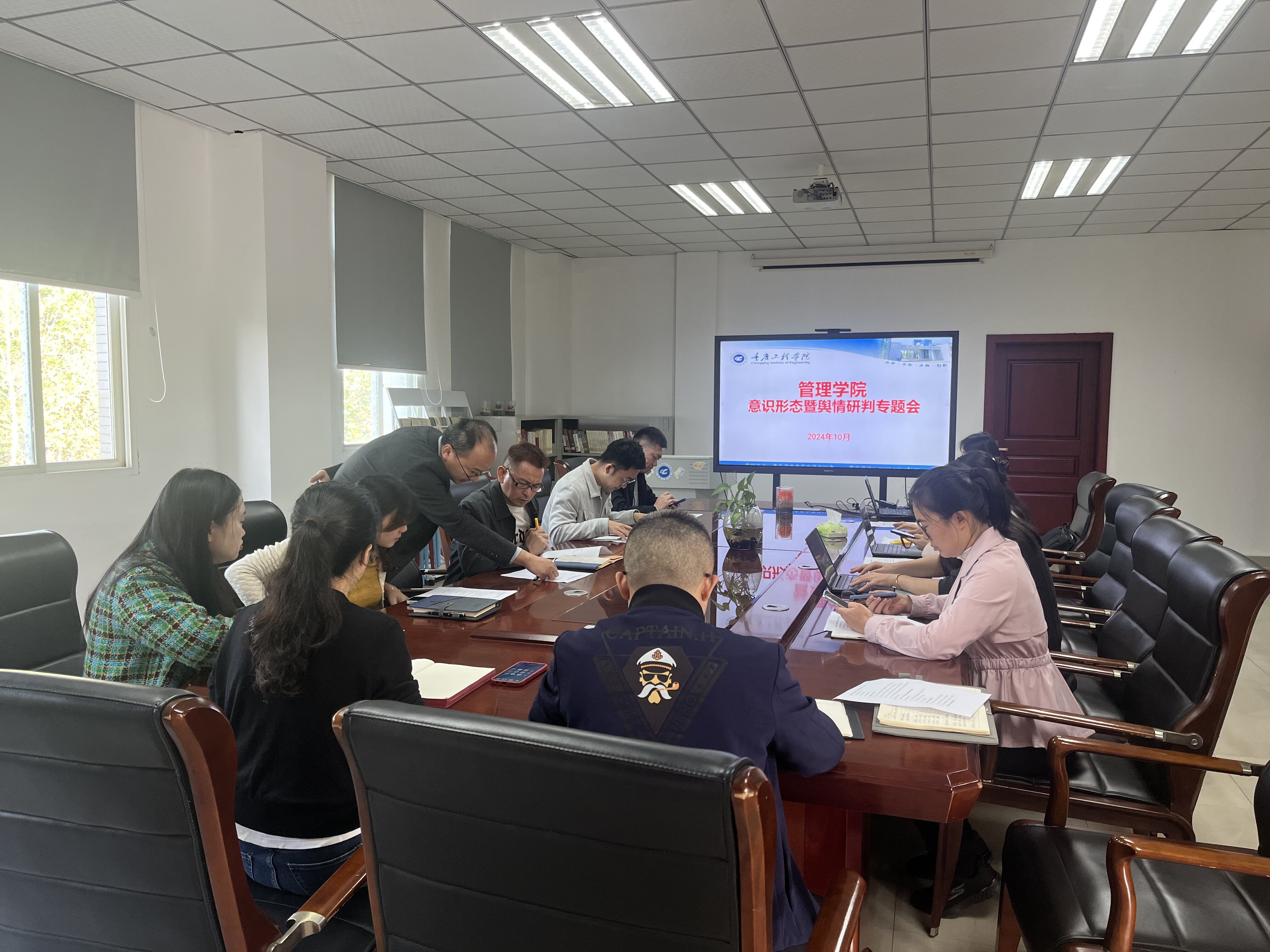 本网讯(图/朱露 文/朱露)为进一步加强学院意识形态工作,及时了解和掌握学生意识形态动向,有效应对和处置各类舆情事件,10月23日,管理学院召开了意识形态暨舆情研判专题会。