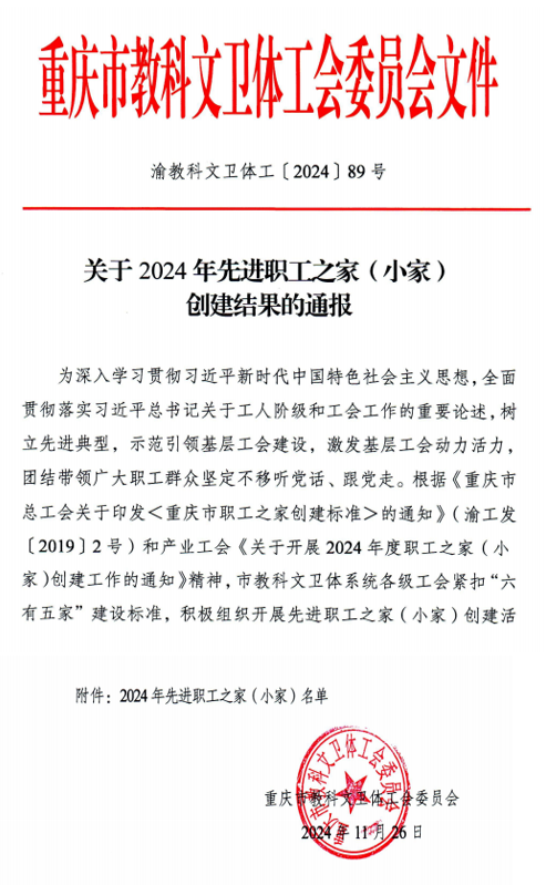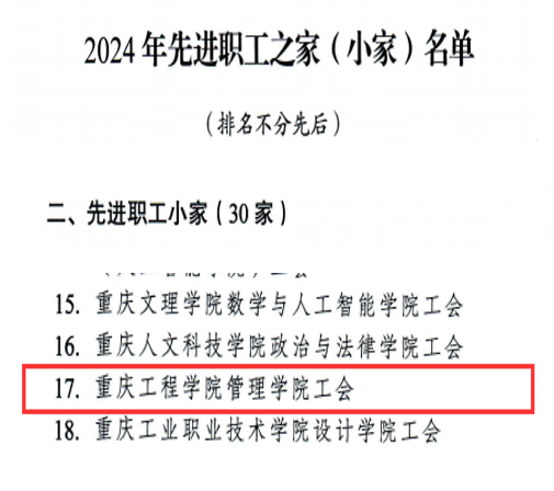 (文/图 办公室 朱露)近日管理学院分工会荣获重庆市教科文卫体工会委员会授予的“重庆市教科文卫体系统先进职工小家”荣誉称号,不仅标志着本院分工会工作取得了显著成效,亦是对我们过往努力的极高赞誉,更是对未来持续进步的深切期许。