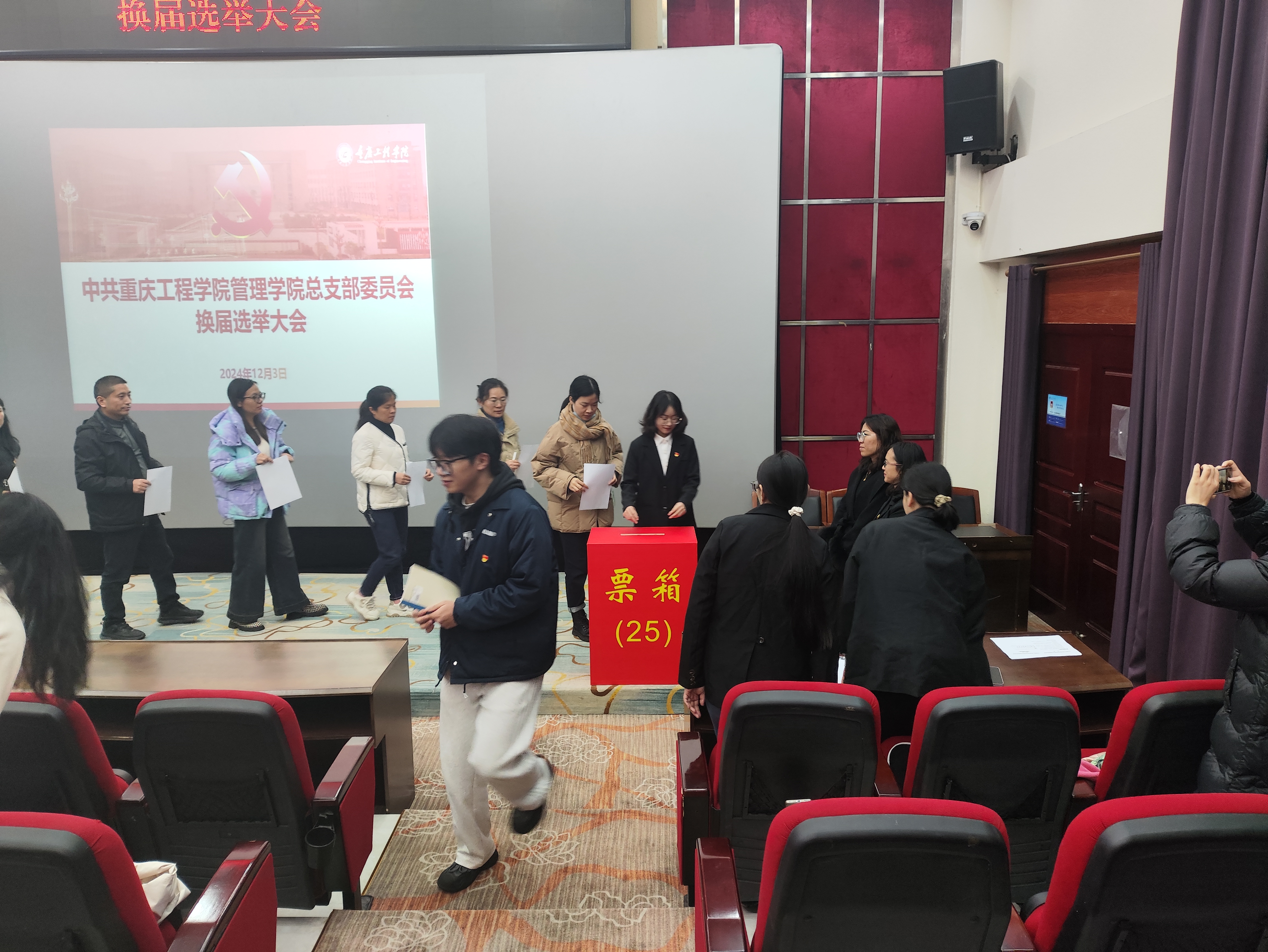 紧接着,大会工作人员宣读了《中共重庆工程学院管理学院党总支委员换届选举办法(草案)》,明确了选举的指导思想、基本原则、候选人条件以及投票、计票等环节的具体要求,确保了选举工作的规范性和透明度。参会党员按照规定的程序和要求,依次进行了投票。整个投票过程秩序井然,党员们积极参与,充分行使了自己的民主权利。