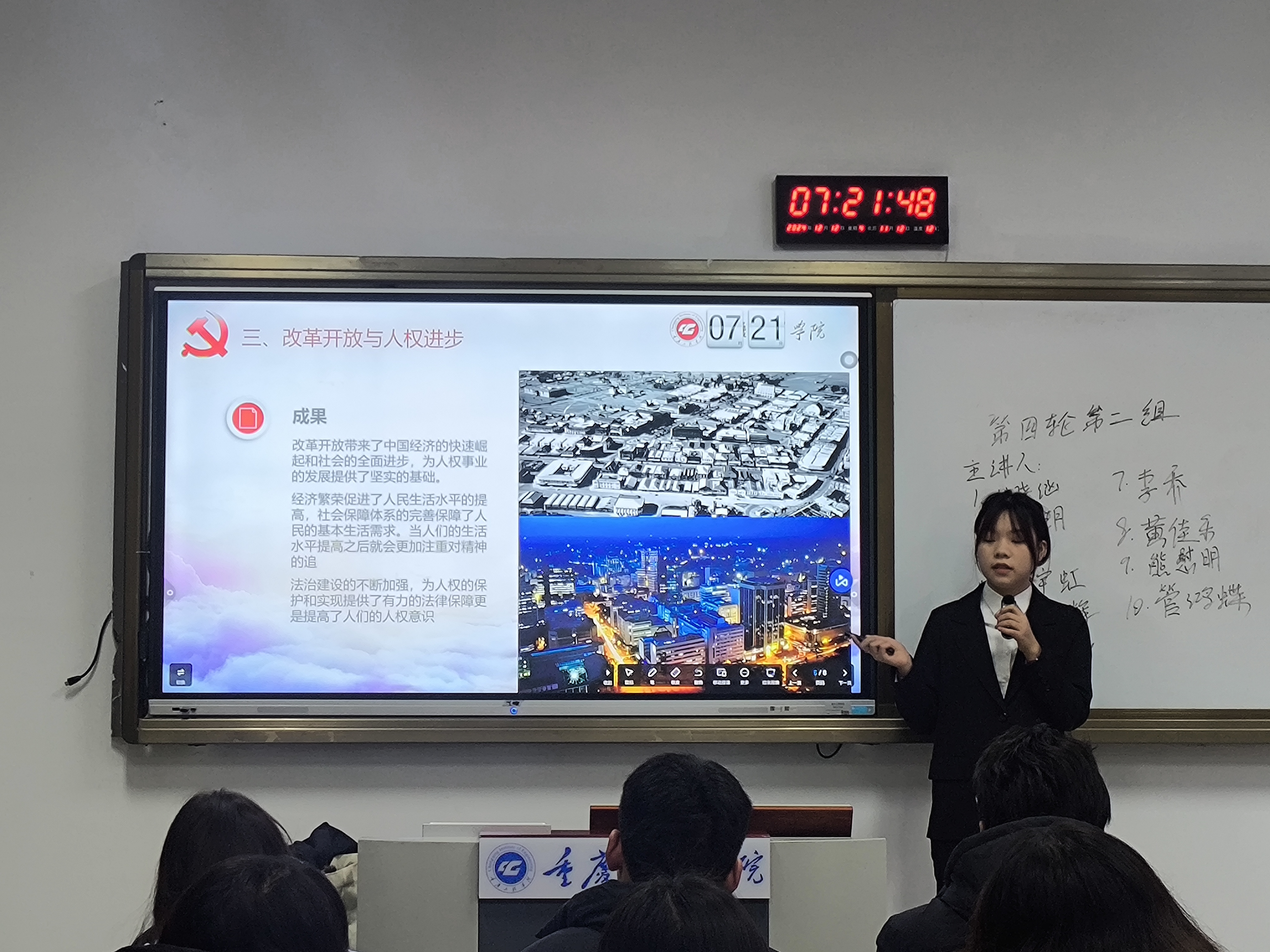 宣讲过程中,学生发展对象强调了人权的普遍性和不可分割性,并通过联系学生日常生活,深入浅出地讲解了全球保障人权的重要性。他们深情回溯中国共产党成立以来,在保障人民权益上的诸多努力,从土地改革让农民耕者有其田,到大力推动妇女权益保护,实现男女平等;从普及教育提升国民素质,到全面依法治国筑牢公平正义根基,一系列举措彰显党在人权事业上的执着坚守与斐然功绩。同时还积极号召同学们,作为新时代大学生应投身人权事业,以实际行动践行人权理念,从身边小事做起,关心弱势群体,倡导公平正义。
