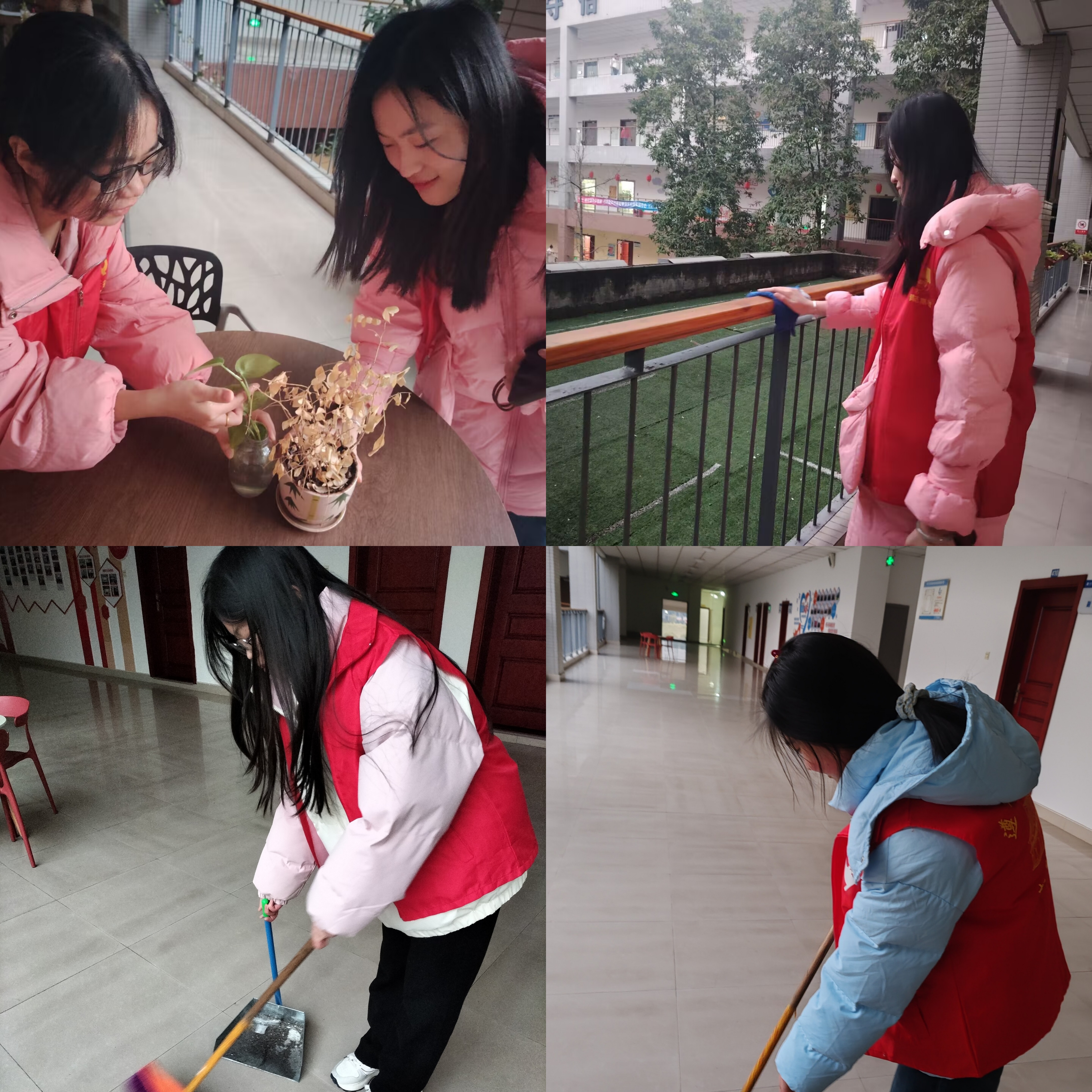 在劳动过程中,成员们手持扫帚、垃圾袋与抹布,全身心投入劳作。走廊地面,在扫帚有力的挥动下,灰尘、碎屑无处遁形;楼梯台阶,一阶一阶被清扫得干干净净,角落的积尘杂物被彻底清除,扶手栏杆经抹布擦拭,光亮可鉴;花坛周边,大家更是细致入微,垃圾被一点点分拣清理,杂草被连根拔起,让这片绿植区域重归清爽整洁,绿意盎然。目之所及,焕然一新的校园散发着洁净之美,每一处角落都凝聚着他们的辛勤付出。