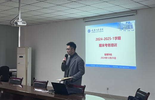 (文/图 教务科 朱凤)为严肃考风考纪,规范考务工作,管理学院于12月25日在3602会议室召开了期末考务培训会。培训会由教务科长朱凤主持,学院党总支书记尚伟及管理学院全体教师参加。