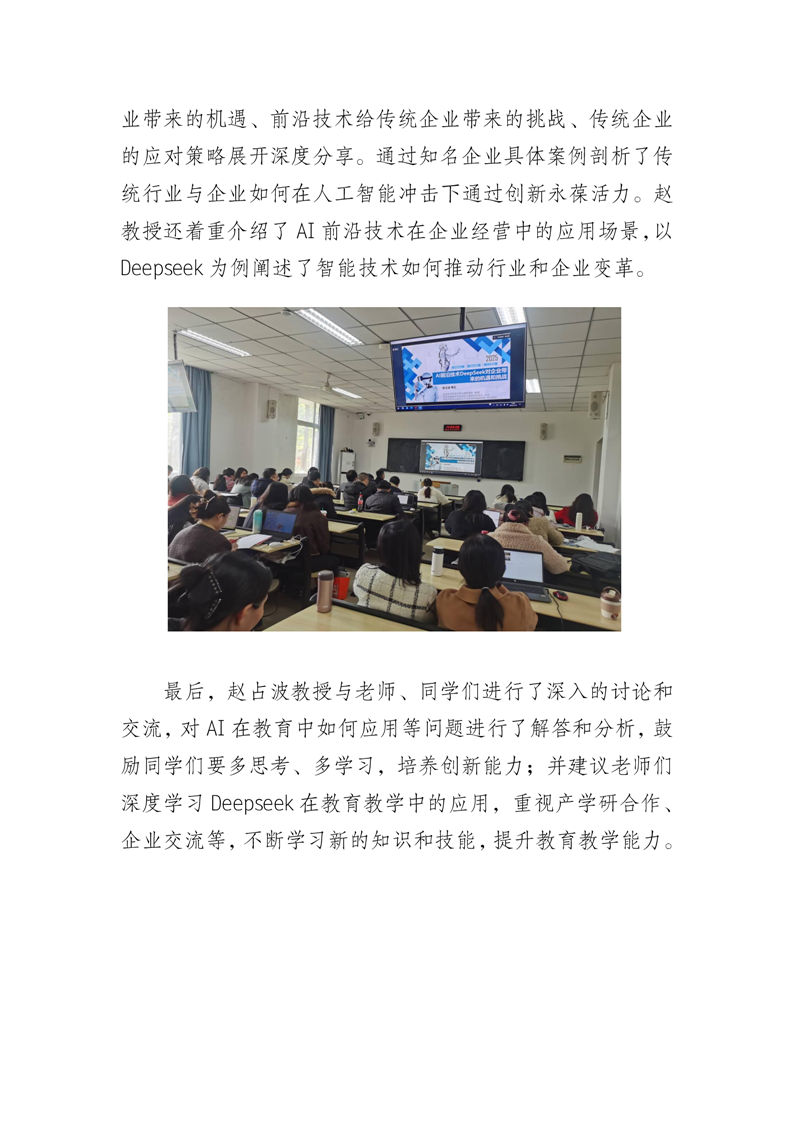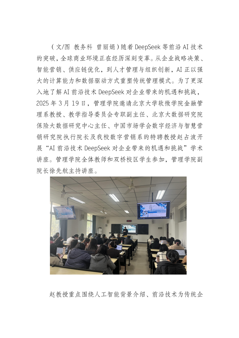 管理学院特邀赵占波教授开展“AI前沿技术DeepSeek对企业带来的机遇和挑战”学术讲座