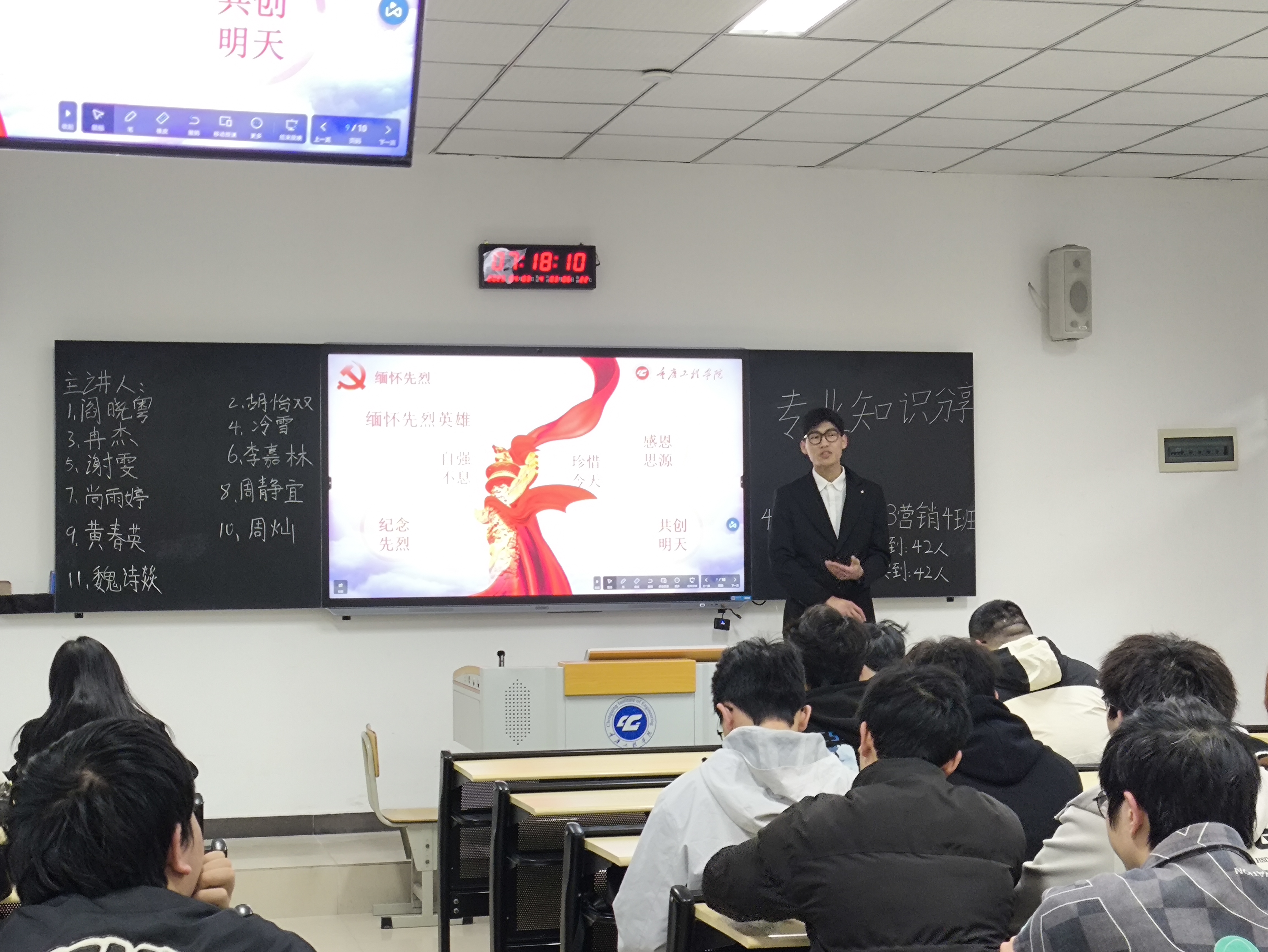 (文/白丹 图/黄媛媛 学生党教中心)为缅怀革命先烈,传承红色基因,结合学院七培四创大学生理想信念教育方案,将党史学习教育融入日常,管理学院学生党员实践教育分中心于4月3日在第六教学楼组织开展了“大学生微党课”进班级活动。本次活动由七名优秀的学生预备党员走进2023各班级,为同学们带来一场主题为“忆清明,承遗志,缅故人”的精神洗礼。