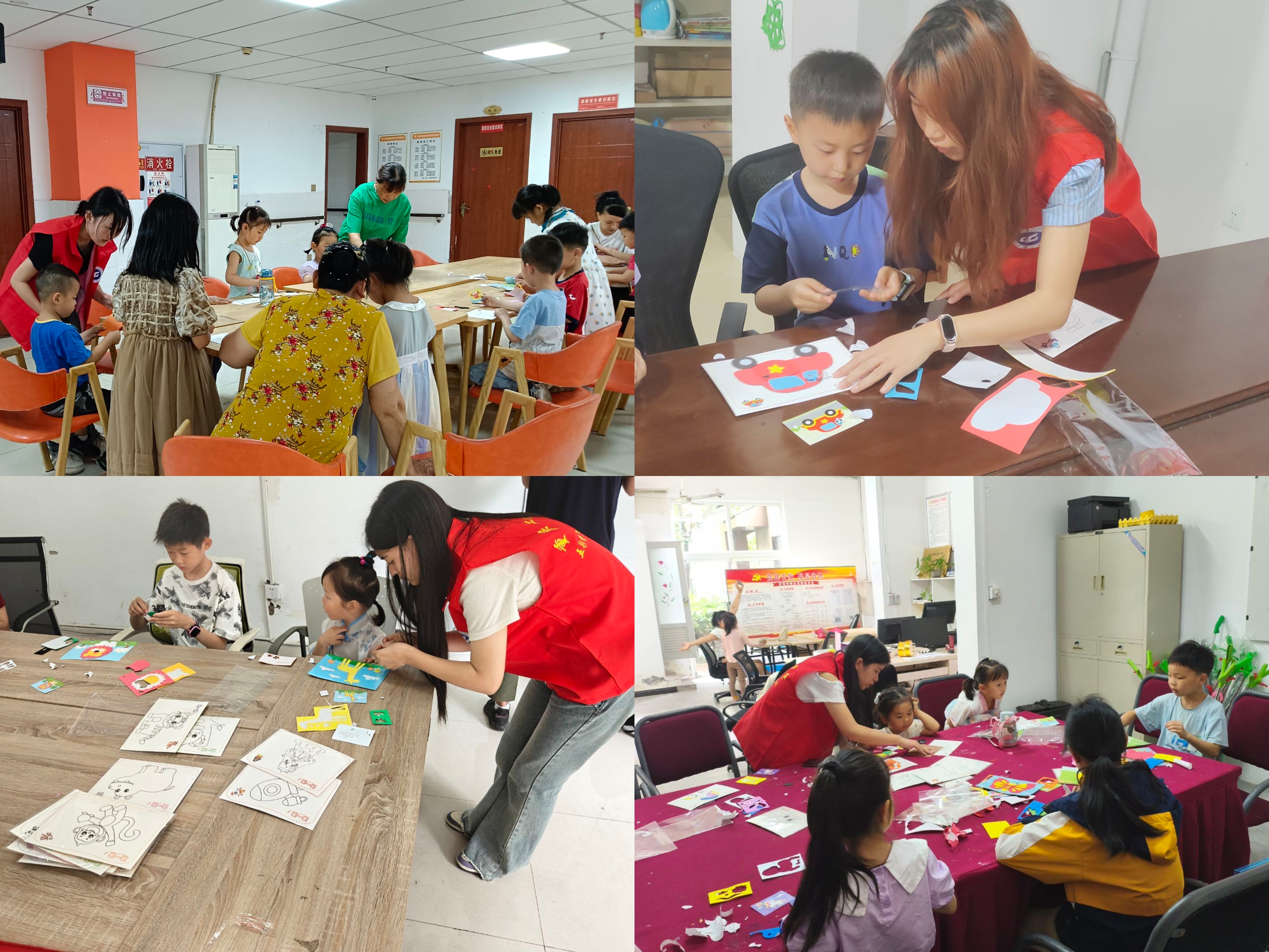 随后,在志愿者引导下,小朋友们用贴画材料将红色记忆转化为具体意象。一幅幅充满童真的贴画作品不仅展现了他们的创造力,更凝聚着对党的朴素情感。活动尾声,全体志愿者与小朋友合影留念,小朋友们的笑脸与手中的贴画交相辉映,留下美好回忆。