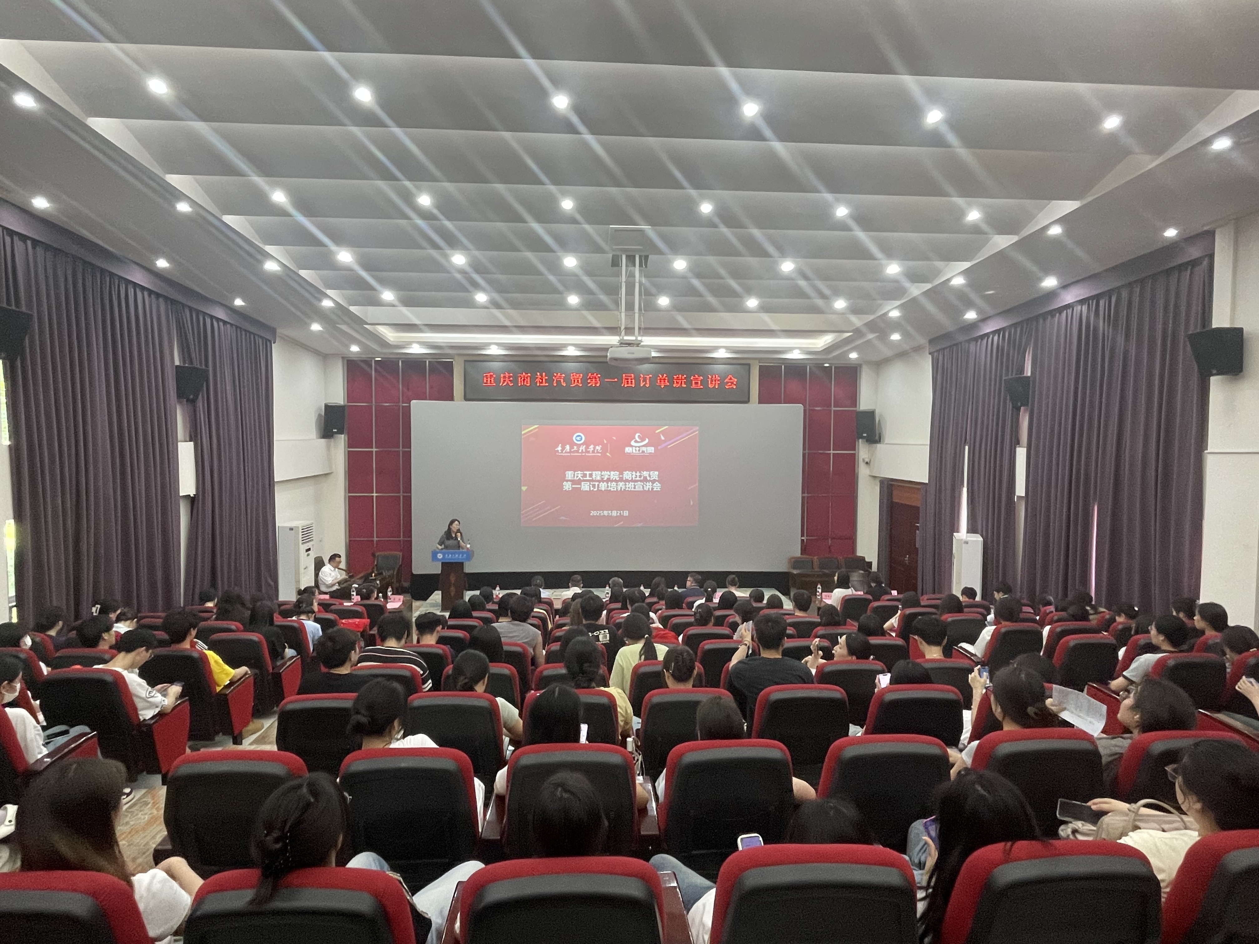 (文/图 管理学院 王聪)2025年5月21日下午,管理学院携手重庆商社汽车贸易有限公司,成功举办了针对2026届市场营销专业学生的订单班选拔活动。近两百名学生热情参与,现场气氛热烈。