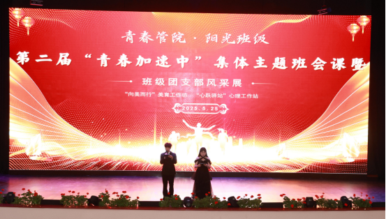 (图/文 管理学院王燕楠)5月25日,管理学院第二届 “青春加速中” 集体主题班会暨班团风采展在学术报告厅举行。此次活动由辅导员美育工作坊与心理工作站联合承办,管理学院大二、大三全体班级及辅导员共同参与,以多元创意的形式,生动展现出青年学子蓬勃的青春风采与强大的班级凝聚力。