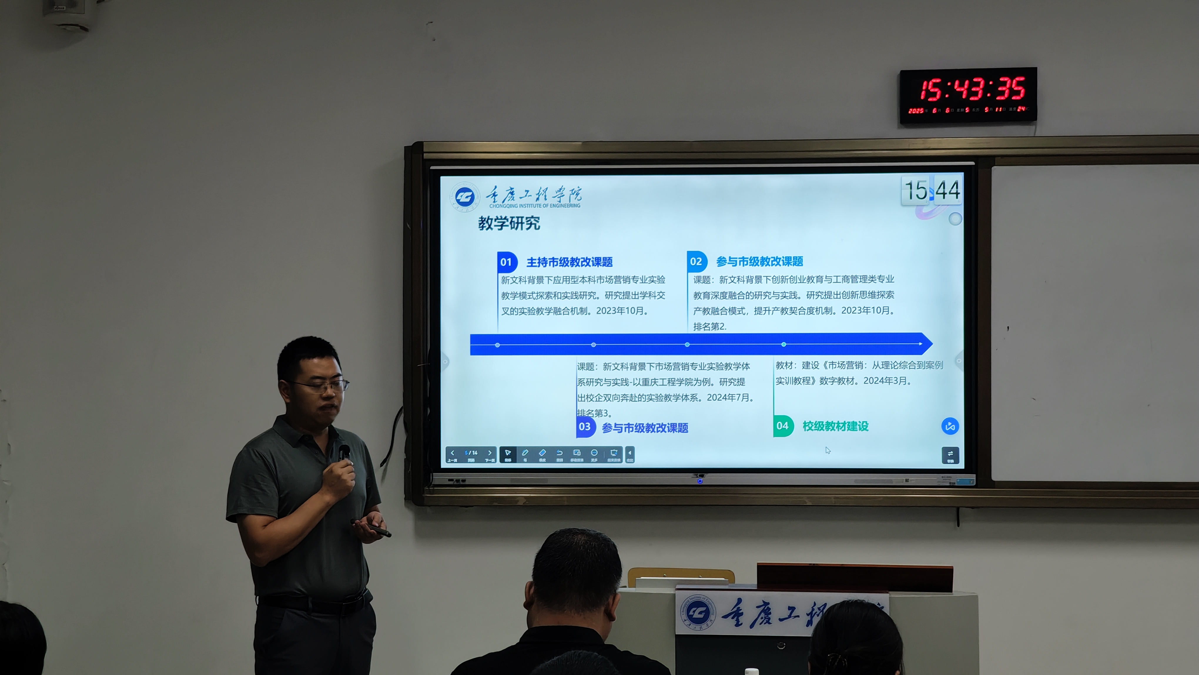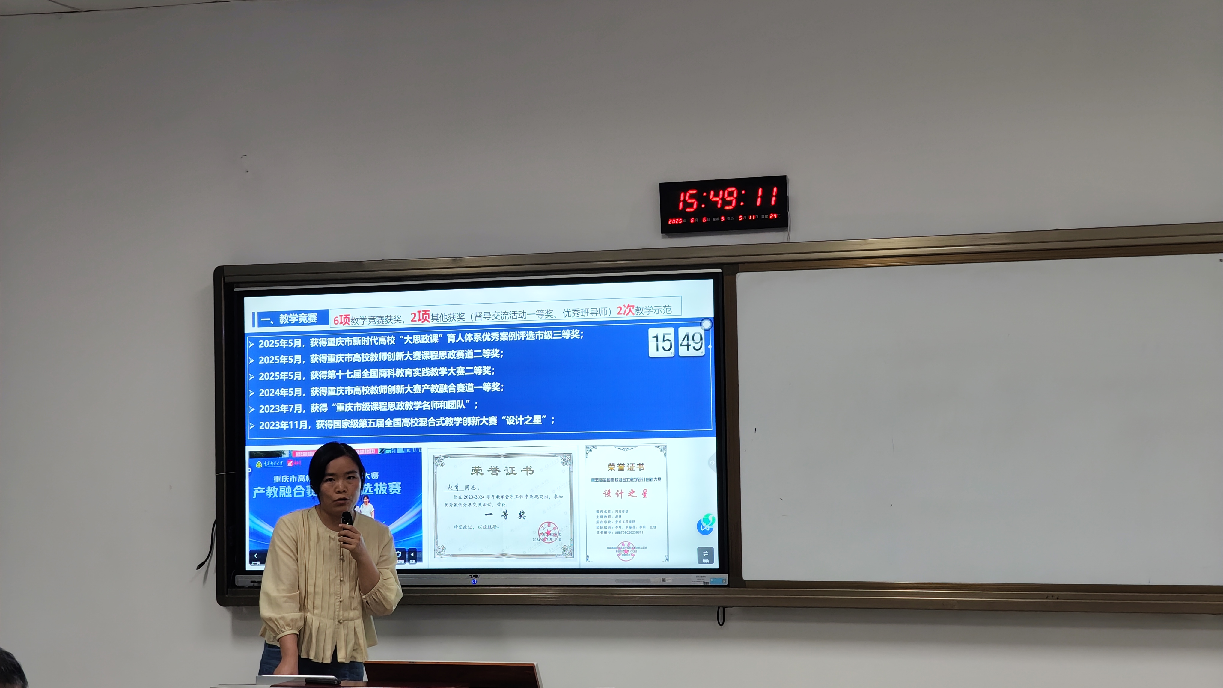 (图/文 李克)按照《重庆工程学院关于评选2024—2025学年度先进个人及优秀教学科研团队的通知》(渝工程院人〔2025〕18号)要求,2025年6月6日15:30,重庆工程学院管理学院在第六教学楼105教室举办先进个人宣讲活动,全体教师与部分学生参与。