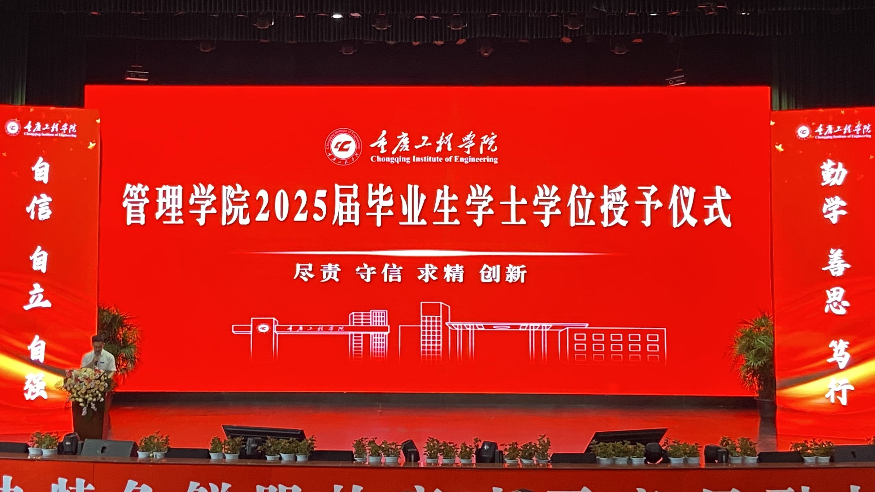 6月20日下午,重庆工程学院管理学院2025届毕业生学士学位授予仪式在学术报告厅隆重举行。学院领导、学位评定委员会委员、教师代表、家长代表及全体毕业生共同参加了这一庄重而温馨的仪式。仪式由学院党总支书记尚伟主持。