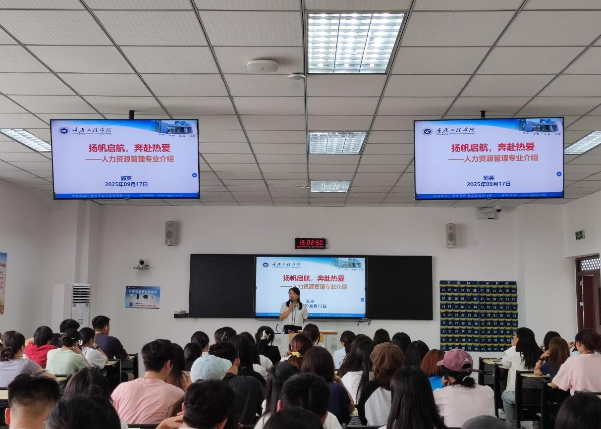 郭英老师以“扬帆起航,奔赴热爱”为主题展开人力资源管理专业进行讲解。她从人力资源管理的核心职能入手,结合企业实际用工场景,解读了招聘配置、员工培训、绩效管理、薪酬福利设计等工作的具体内容。同时,郭英老师结合行业发展趋势,强调了人力资源数字化转型对专业人才的新要求,并分享了HR岗位的职业晋升路径,为学生规划学业与职业提供了清晰指引。