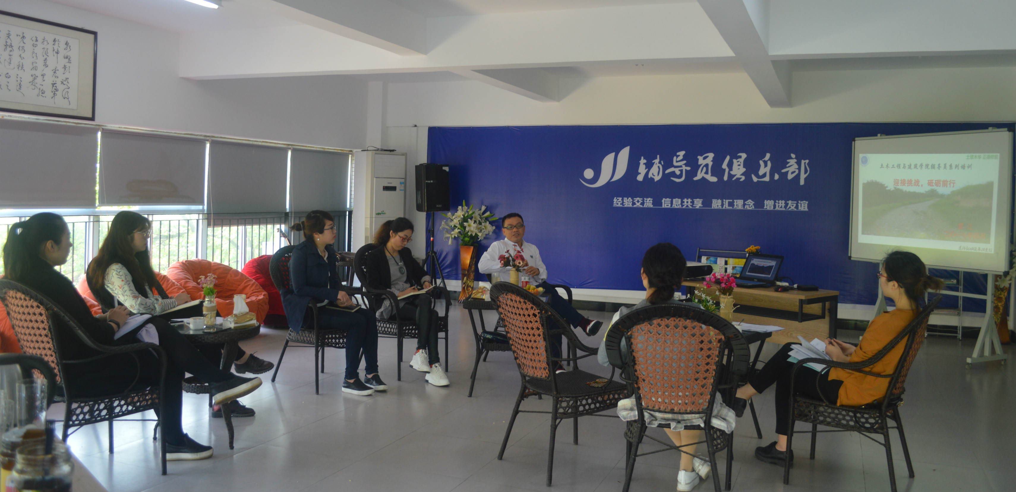 本网讯 (文/崔雅斐 图/许婷)2017年4月14日上午9:30,土木工程与建筑学院辅导员系列培训暨学校第2期辅导员沙龙活动—在大学生服务中心二楼辅导员俱乐部召开。土木学院执行院长雷江作《迎接挑战 砥砺前行》主题培训,土木学院书记杨晓玉及全体辅导员参加了培训。