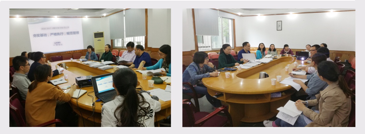 2017年5月3日下午14时,副校长程昌华、王琼花、教务处处长胡继志等检查组一行人莅临我院作期中教学检查。学院执行院长、办公室主任、环境设计系主任、工程管理系主任、实习实训中心主任、教研组长、教学秘书等参与工作汇报及交流。
