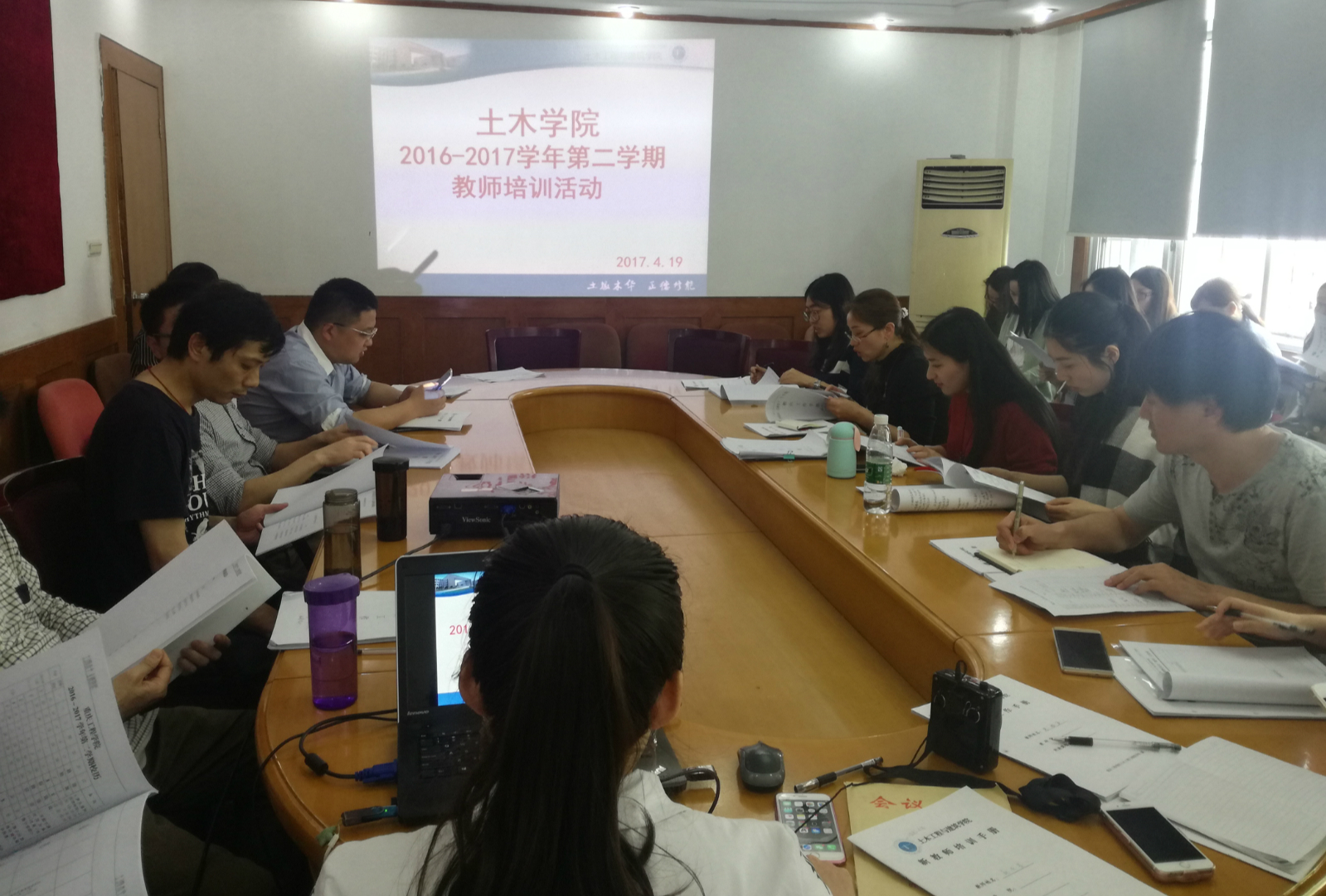 2017年4月19日下午,土木学院在一教二楼会议室开展了第二学期教师培训活动,出席此次活动的人员有院长雷江、书记杨晓玉、办公室主任赵友贵,以及土木学院的全体教师。