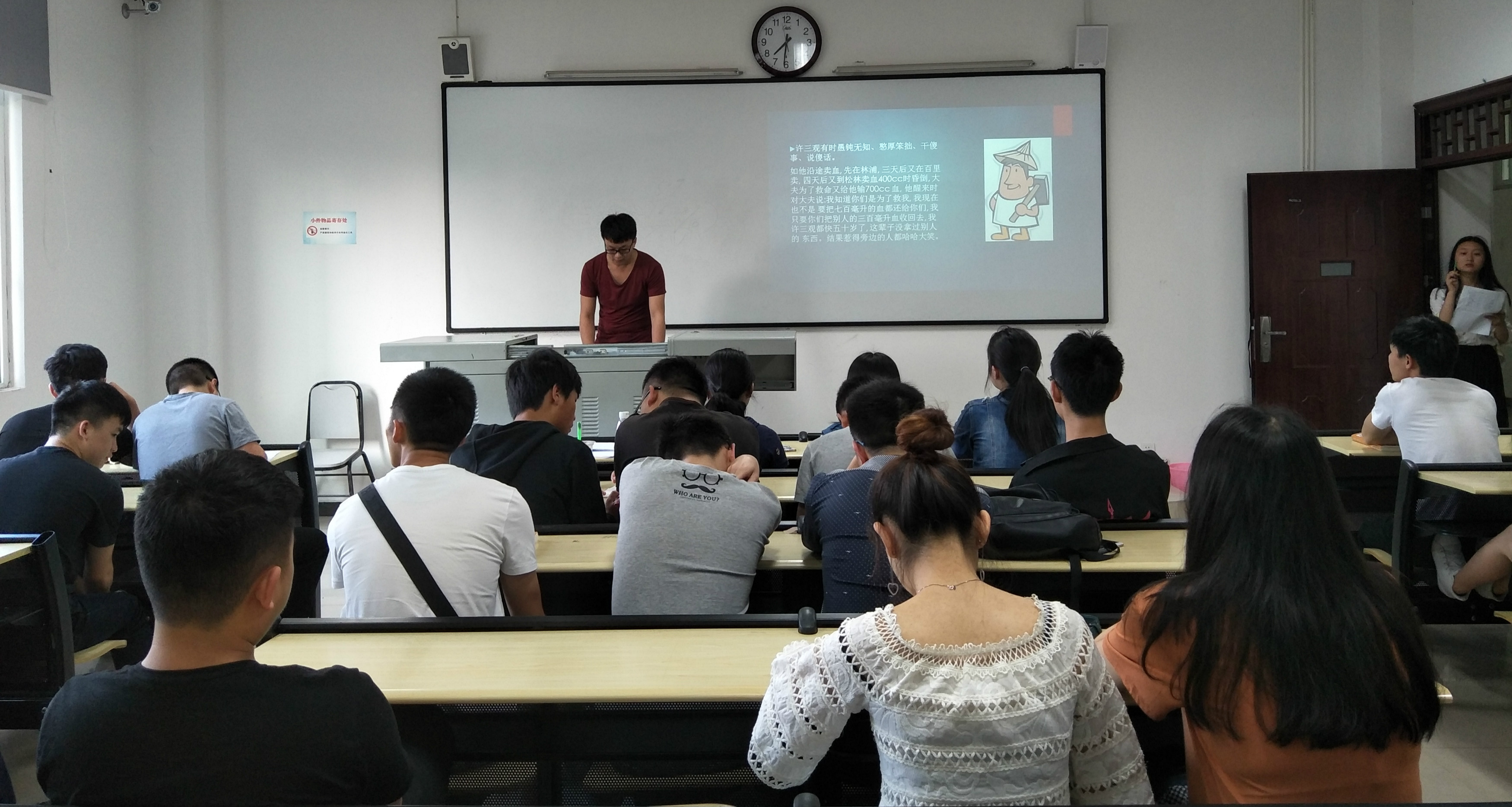 本网讯(文/冉庆 图/刘典)2017年5月26日早上7:20,工程造价11-18班晨课中国名著赏析结业考试于六教119顺利进行。本次晨课考试采取同学上台演讲分享读书心得的形式,经过同学们两周的精彩展现,本次考试圆满结束。