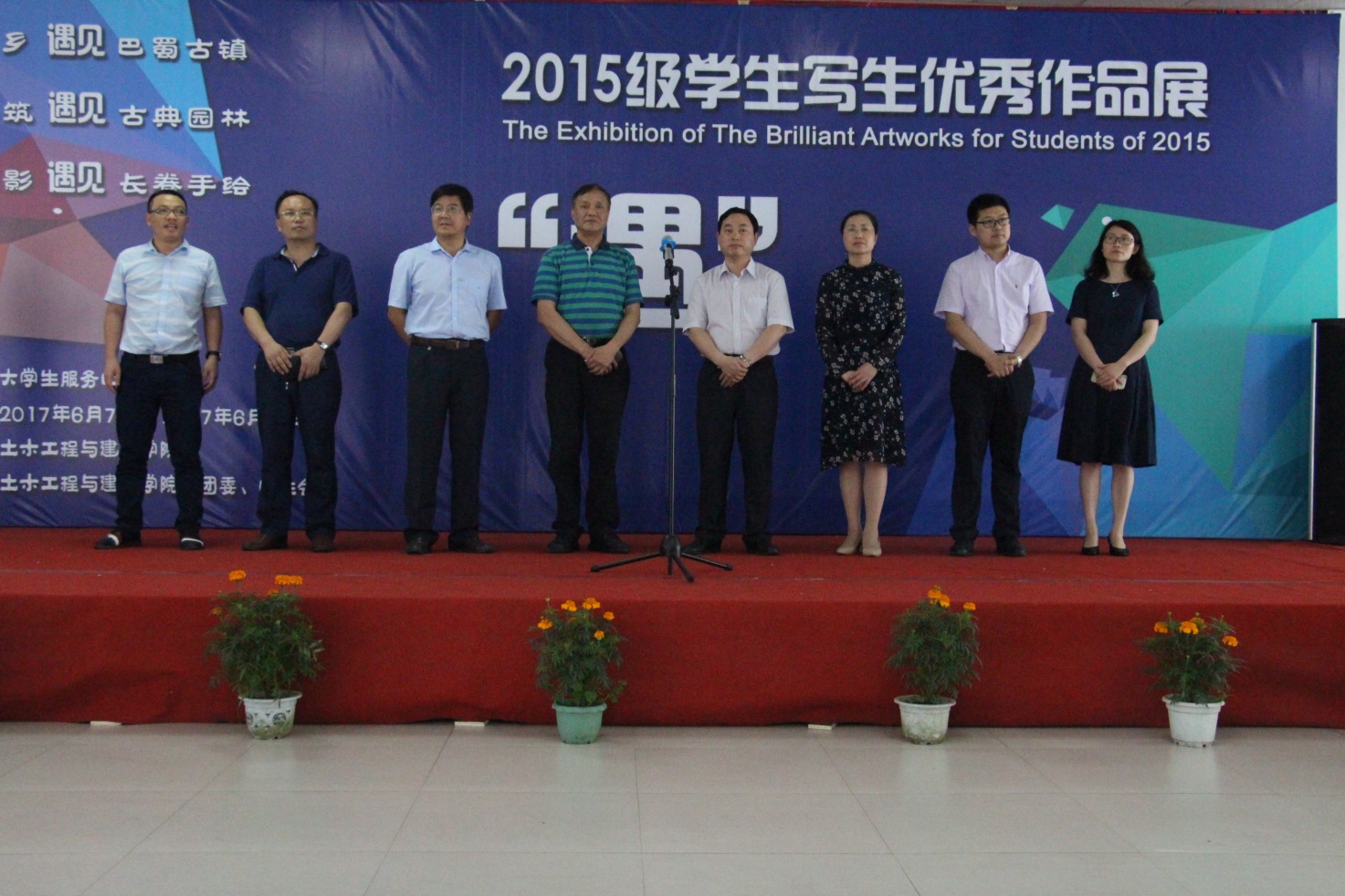 本网讯(文/张华 图/曾薪文) “遇见六月”——土木工程与建筑学院第一届学生写生优秀作品展于6月7日下午14:00在大学生服务中心三楼开幕。本次开幕式由党支部书记杨晓玉主持,校长唐一科、党委书记兼常务副校长张业平、副校长程昌华、副校长王琼花、党委副书记盛友兴、教务处处长胡继志,信息中心主任皮小军、工程训练中心副主任陈艳莲、土木学院执行院长雷江等出席。