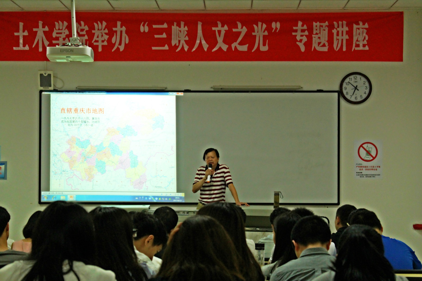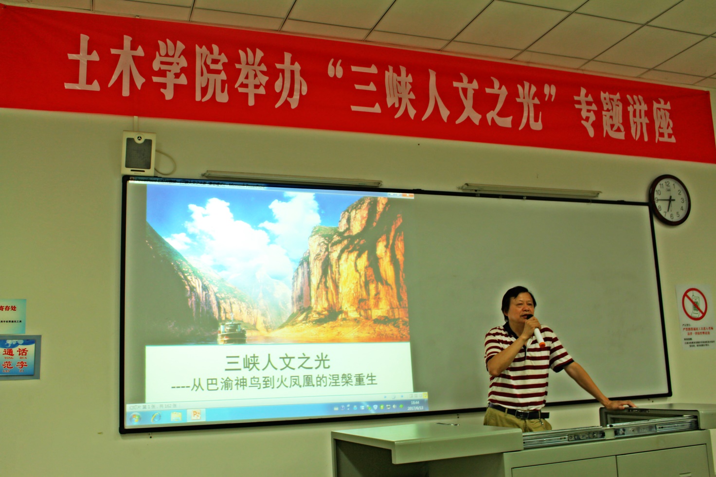 本网讯(文/张华 图/刘仁君)6月13日晚上18点30分,土木学院环境设计系蔡跃宏教授受邀在六教202开展了《三峡人文之光——从巴国神鸟到火凤凰的涅槃重生》的主题讲座。