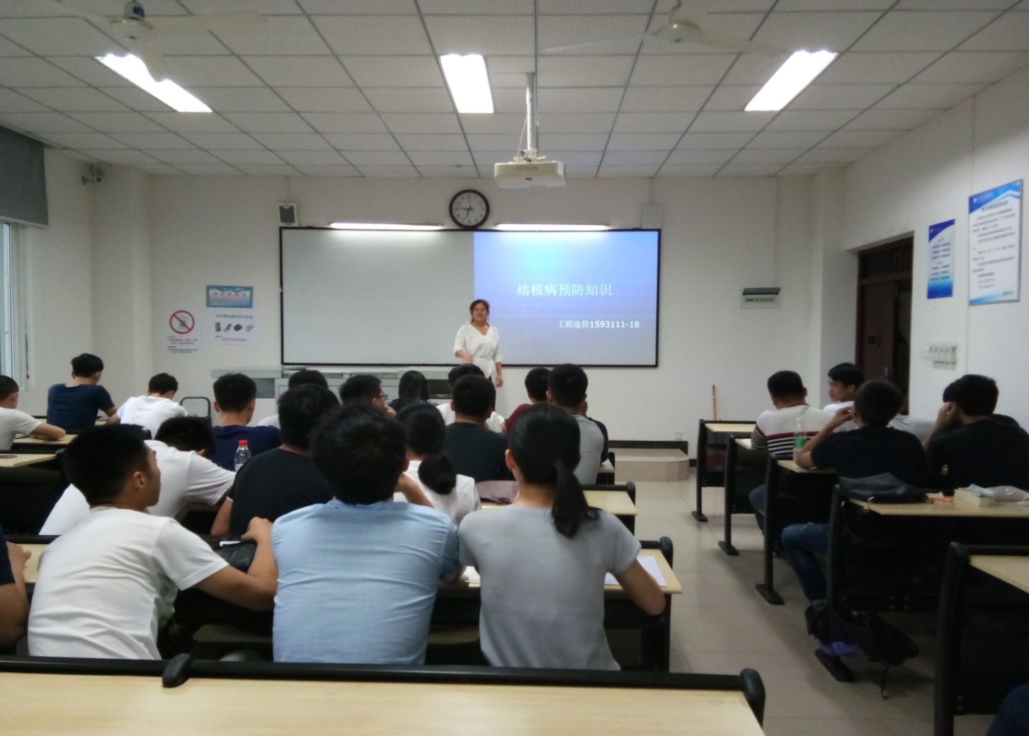 本次活动在六教310举行,首先辅导员崔雅斐老师就结核病的传播途径和危害等方面进行了介绍,肺结核是法定传染病中的乙类传染病,主要通过呼吸道传播,该病在全球广泛流行,严重危害着广大人民群众的身体健康,目前,我国结核病患者数量居世界第二位。其次由各班代表上台分享自己所了解的结核病防治措施,总结有以下几点:一是寝室、教室要常开窗通风,保持室内空气清新;二是养成良好的卫生习惯,常洗漱,勤洗手,勤换衣;三是发现有结核病的症状,必须立即就医,防止传染。最后在几位同学的结核病防治宣传小品中结束了本次活动。