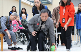 志愿者们陪同老人们安全到达运动会现场,由福利院工作人员为运动会致开幕词。此次运动会有保龄球、夹弹珠、赶猪进门、爱的传递等特色项目,极大地调动了老人们的积极性,现场充满了欢声笑语,最后志愿者们为取得优异成绩的老人颁奖。