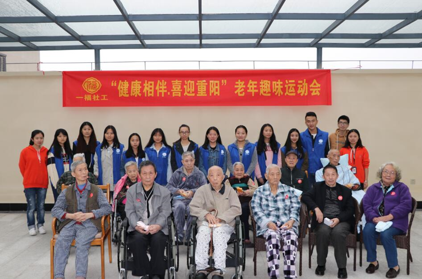 本网讯(文/周丹 图/黄思涵) 2017年10月25日下午14点整,重庆第一社会福利院开展了一场别开生面的运动会——“健康相伴,喜迎重阳”老年趣味运动会。此次运动会由土木学院青年志愿者协会主办,土木学院青年志愿者们和老人们共同参与。