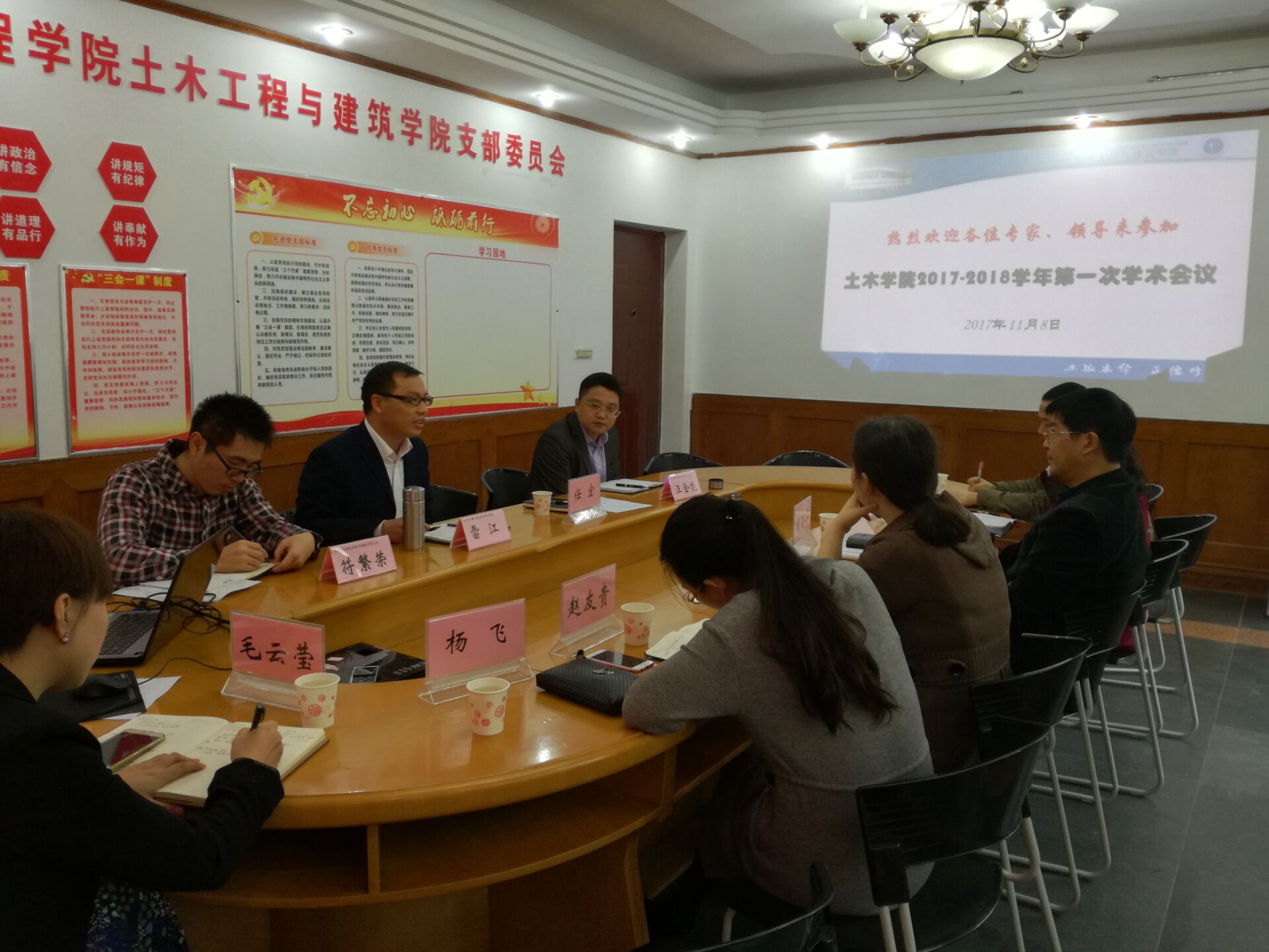 2017年11月8日上午,土木学院在学院二楼会议室召开了2017-2018学年第一次学术会议。本次会议的主题是落实学校“校企合作、产教结合”的办学模式,加强本科专业内涵建设。副校长程昌华、科技处处长李静、教务处副处长赵友贵、质评办副主任袁开友、工程训练中心副主任陈艳莲、动画学院副院长杨飞、土木学院院长任宏教授等校内专家、领导出席会议,会议由土木学院执行院长雷江主持。