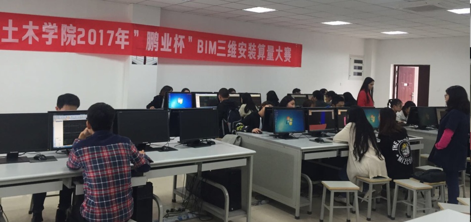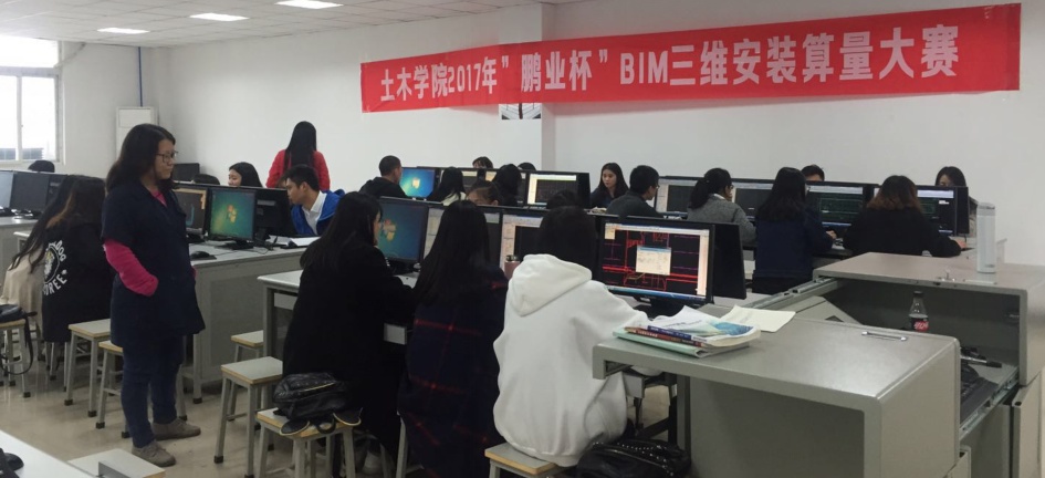 为了更好地提升学生专业知识水平、培养学生实践能力,我校土木学院以“以赛促教”为指导方针,联合校企合作单位鹏业软件公司于2017年11月15日下午两点在实训楼414、413实训室举办了第三届“鹏业BIM三维安装算量竞赛”。