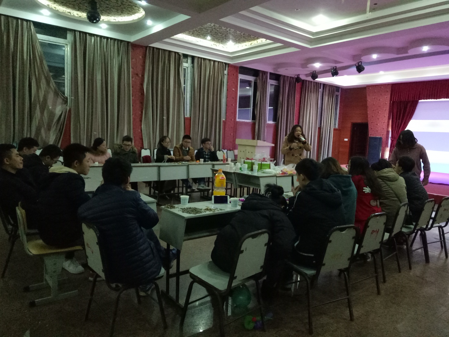 活动以班级8位同学10月份的生日为契机开展,以全体成员齐唱班歌《追梦赤子心》拉开帷幕。首先由班长胡春香阐述本次活动的流程及意义,然后由班级文艺委员谭钦月主持并安排开展爱的抱抱、抢凳子和分组传话三个游戏环节,同学们都积极参与,沉浸在一片欢声笑语中。最后,由神秘人物献给班级生日同学唯美语录及歌曲,全班同学齐唱生日歌并一起分享生日蛋糕。