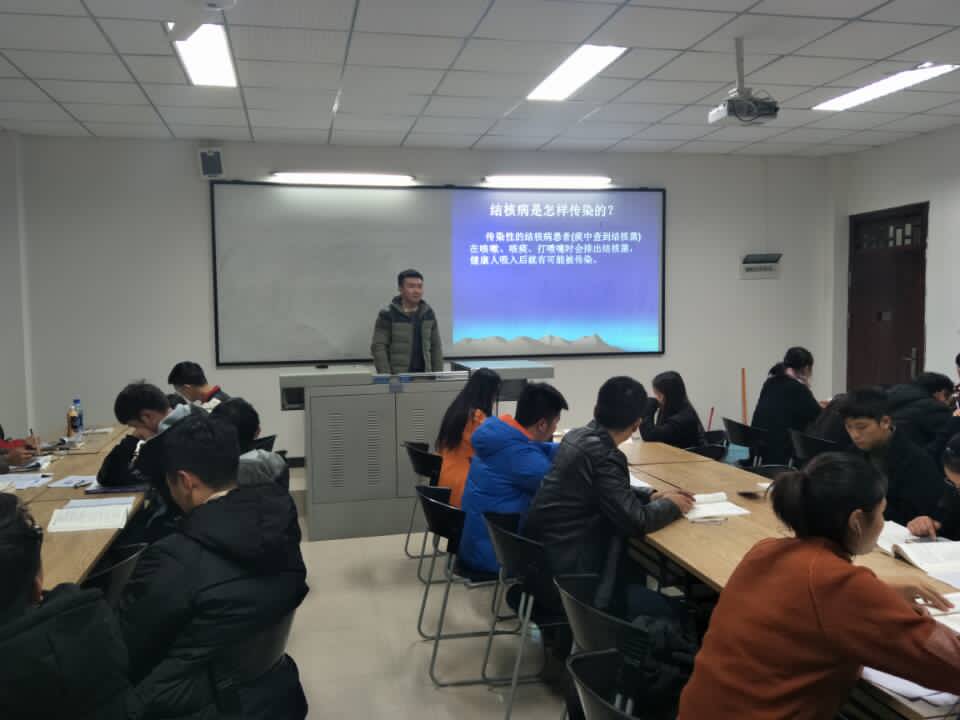 本网讯(图/文 石芹)为了引起当代大学生对结核病这一社会问题的关注,2017年11月28日18:30,重庆工程学院16级工程造价11-12班于第六教学楼418教室开展“遏制结核 健康校园”活动。