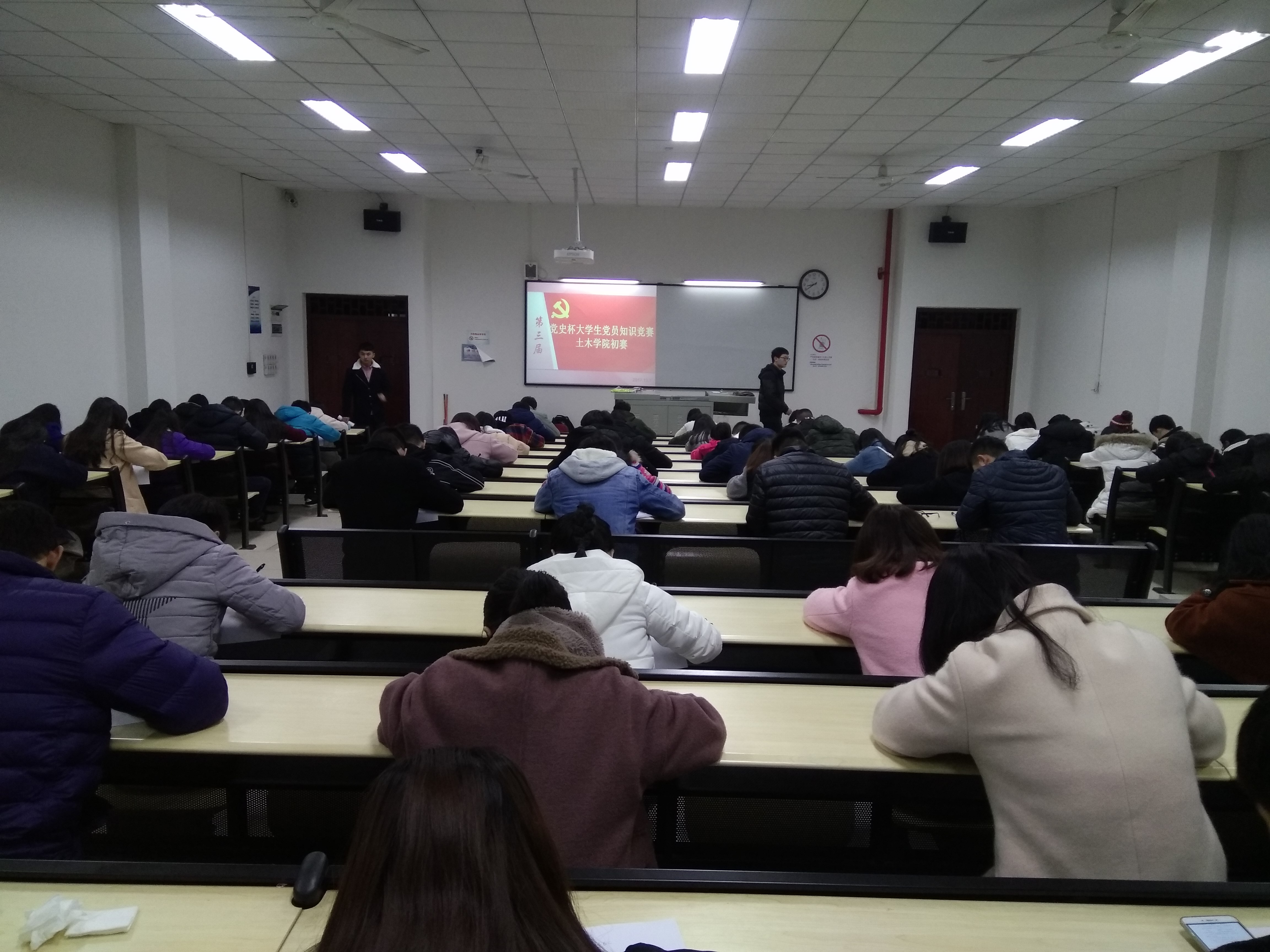 本网讯(文/石嘉欣 图/胡春香)12月7日晚,土木学院入党积极分子、发展对象、预备党员在6教202顺利开展了“党史杯”初赛。