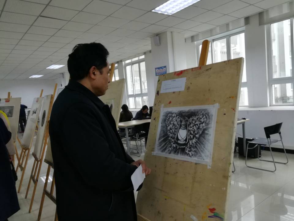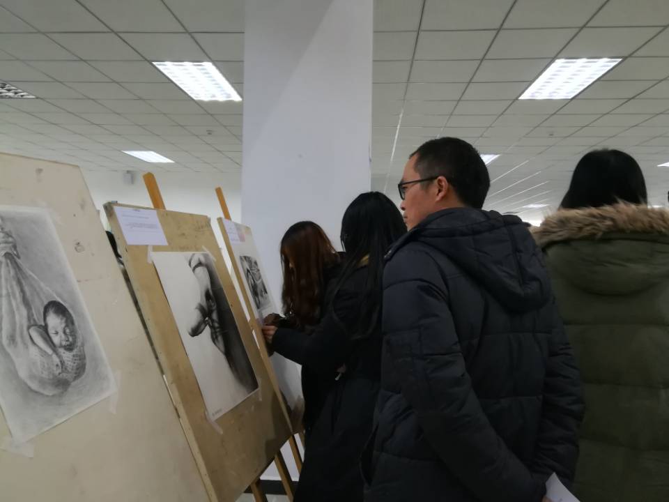 本网讯(图/文 肖瑶)2018年1月4日上午10:00,土木学院在双桥校区图书馆举办了以“新生·希望”为题的期末优秀画作展,本次画展共展出60幅优秀作品,由环境设计专业2018级1~6班同学提供,其中12幅作品获奖。双桥校区党委副书记冉维新参加了画展开幕式。