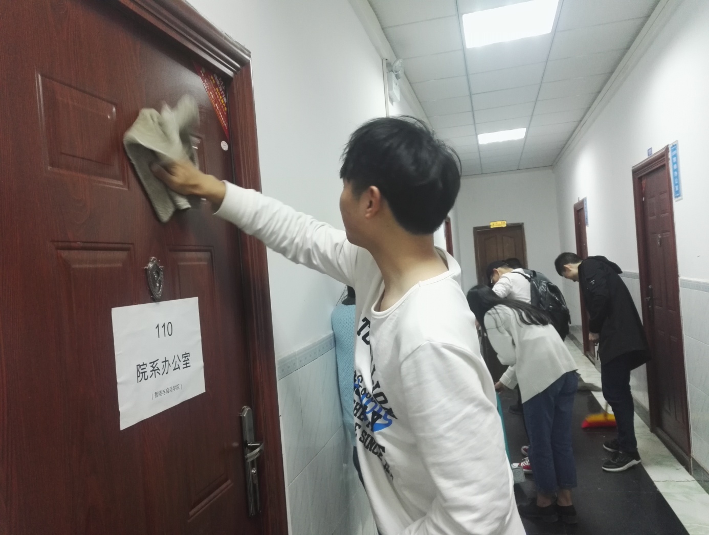 本次活动由16级工程造价4班团支部书记江海组织,全体同学参加。同学们分为5个小组,分别打扫土木学院办公楼一、二、三楼,同学们拿着扫帚、拖把仔细的打扫,不放过任何一个角落。经过两个小时的努力,办公楼被同学们打扫的焕然一新、一尘不染,老师们也对大家的行为赞不绝口。