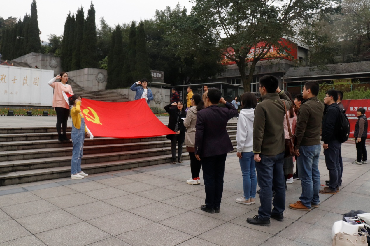 学院全体教师党员前往红岩魂广场进行参观学习。在歌乐山革命烈士陵园前,面向党旗,在院党总支书记杨晓玉的带领下,全体党员庄严的举起右拳,重温入党誓词,表达了广大党员继承革命传统,坚定理想信念的心声。之后,大家一起参观了红岩魂陈列馆,通过讲解员的讲解,党员同志们身临其境,真切地感受了革命先烈们为党和人民事业前仆后继、不怕牺牲的革命精神。最后,组织全体教师党员观看爱国主义教育纪录电影《厉害了,我的国》,该片结合十九大精神,将祖国发展和成就以纪录片的形式呈现在大荧幕上,全面反映党的十八大以来中国取得了改革开放和社会主义现代化建设的历史性成就。观影结束后,大家纷纷表示幸福感和民族自豪感油然而生。