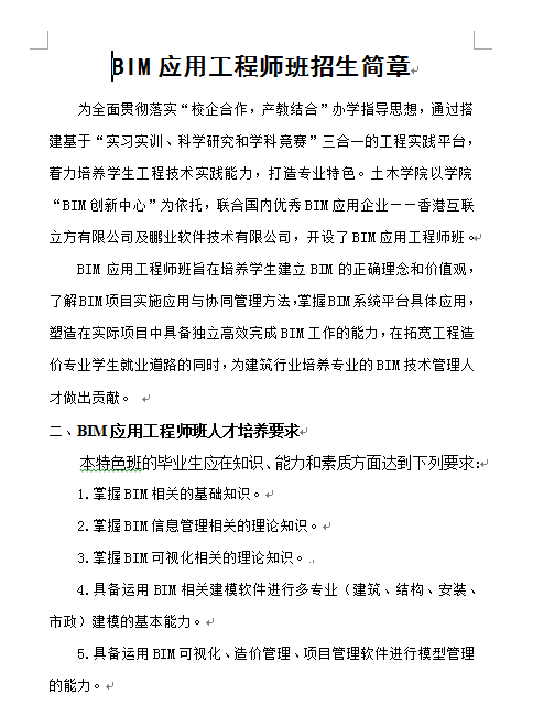 学院希望通过“BIM应用工程师班”专项培养,不断增强学生的BIM实施管理能力,为行业培养一批具有BIM实战能力的人才,更有利于推动学生就业,促进学院良性发展!