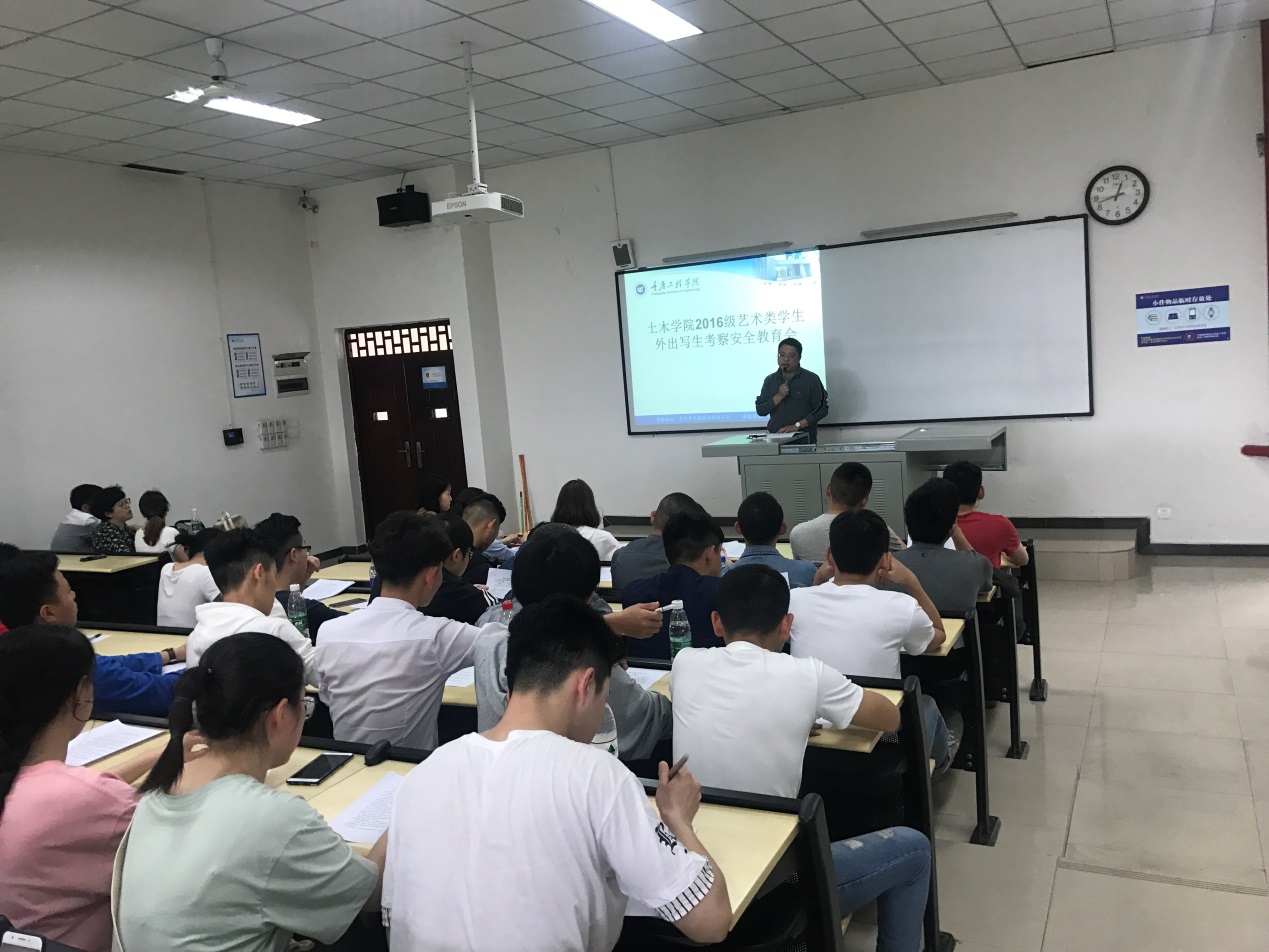 (文/管涛 图/李丝)2017年4月20日,土木学院针对即将外出写生的2016级艺术类学生在六教204教室开展了一场出发前安全教育会。学院党总支书记杨晓玉、副院长汪金能、环境设计系主任符繁荣及所有带队老师和全体2016级艺术类学生参会。